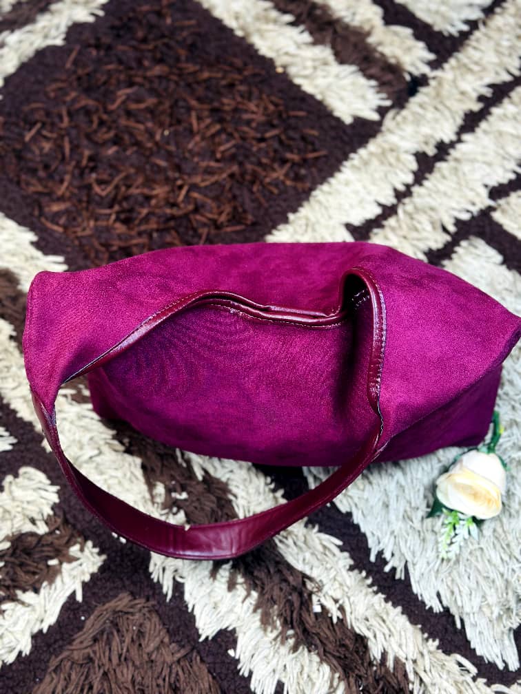 Burgundy Suede Faux Leather Shoulder Bag – Elegant, Soft & Stylish