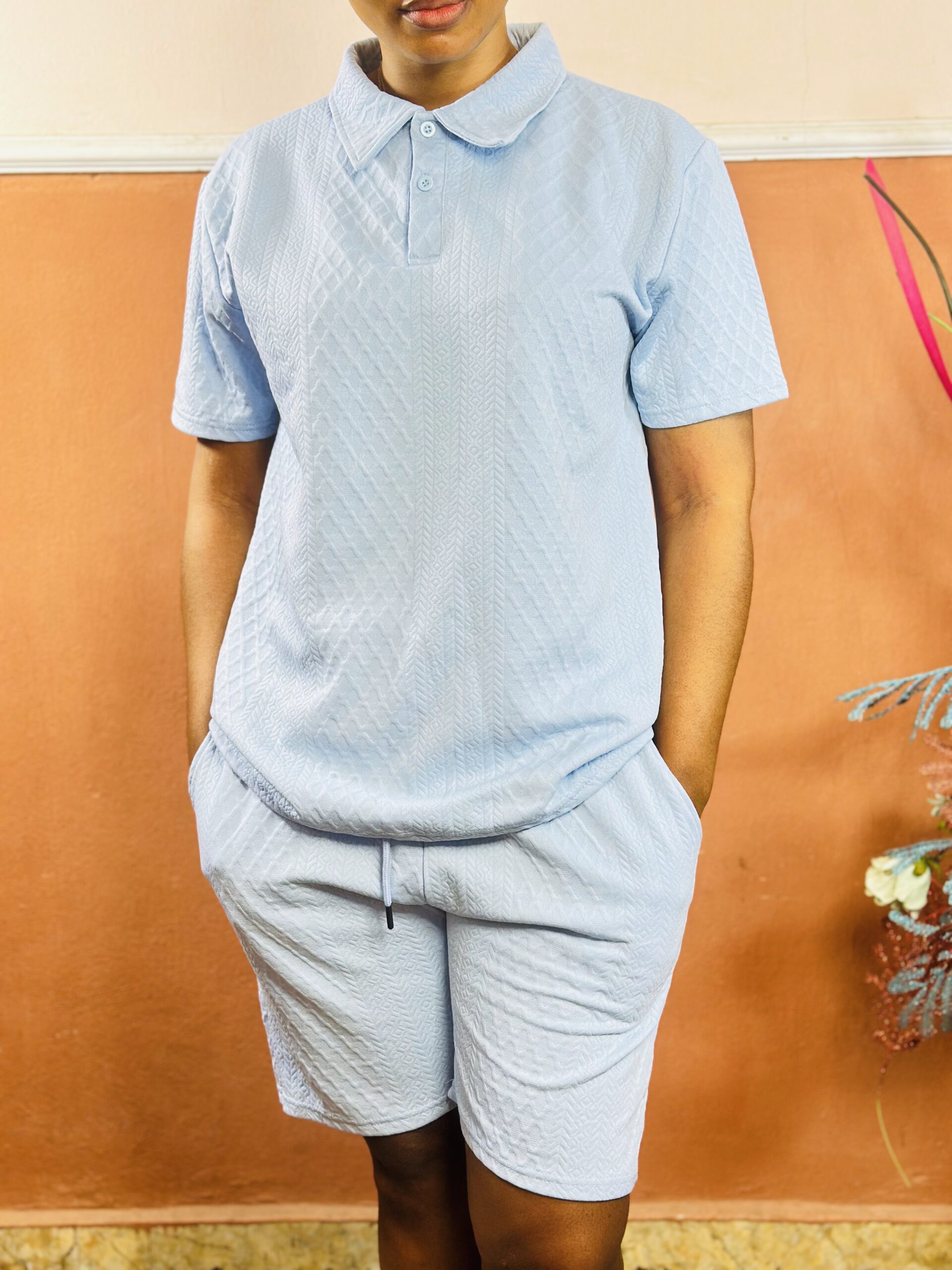 A fresh and stylish Unisex Sky Blue Polo Shirt and Short Set designed for comfort, versatility, and clean everyday fashion.