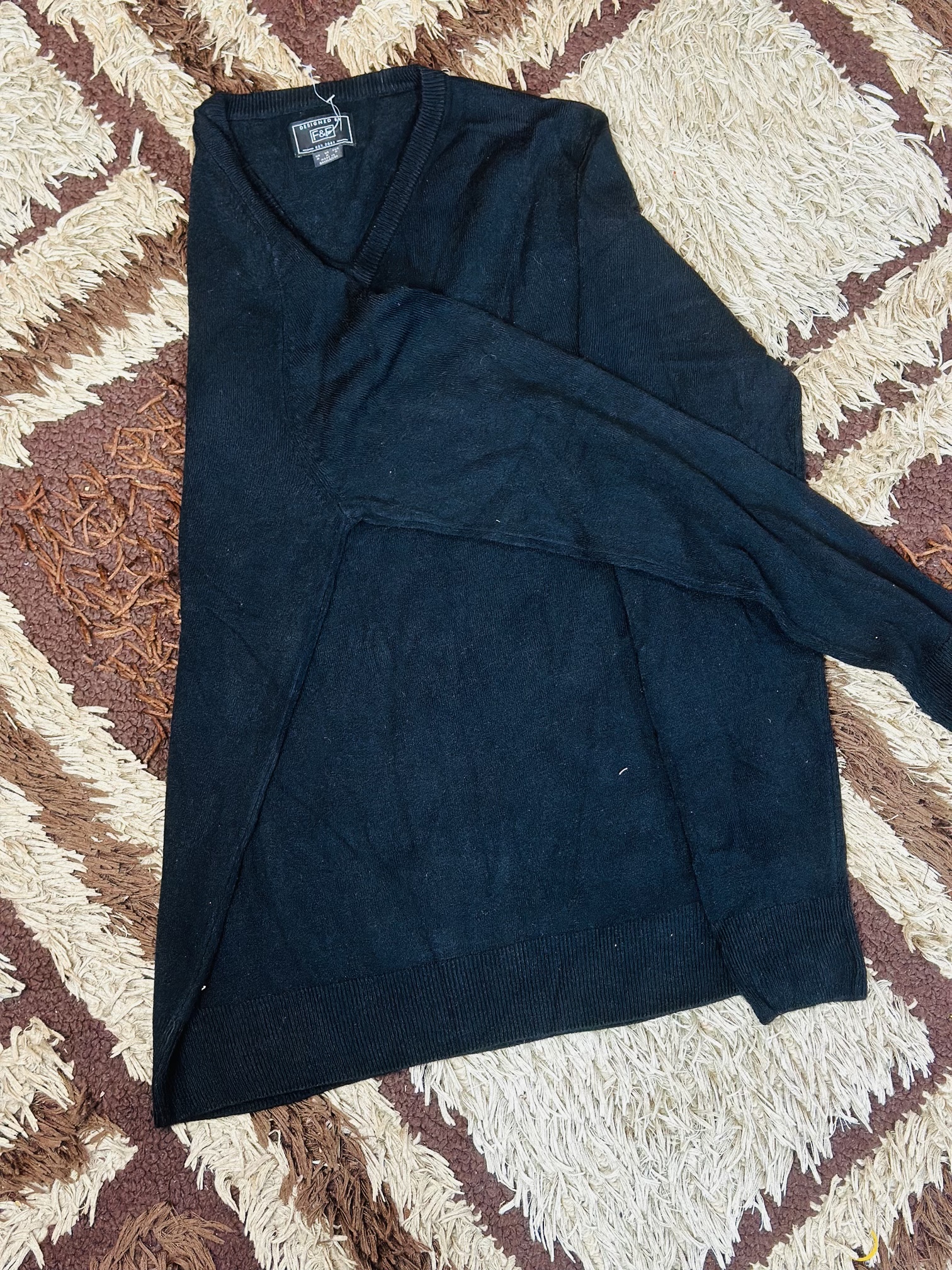 A lightweight black V-neck sweater crafted for comfort, versatility, and effortless everyday style.