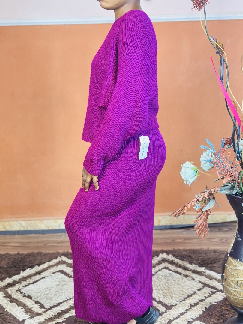 The Magenta Ribbed Knit Set is a chic two-piece outfit that combines modern style with cozy comfort. Crafted from soft ribbed knit fabric, this set offers a flattering, stretchy fit that moves with your body.