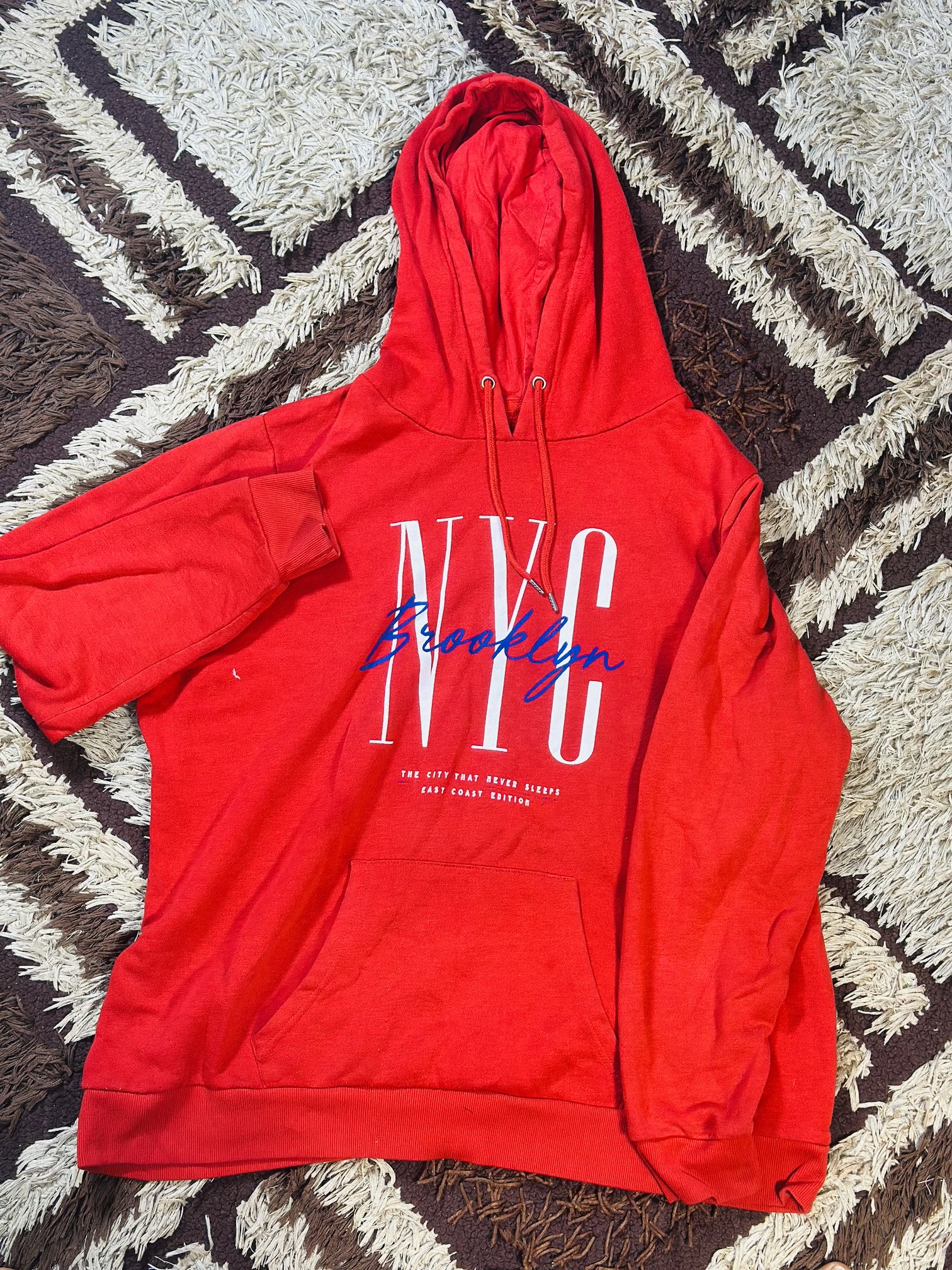 The NYC Brooklyn Red Hoodie brings classic street fashion to your wardrobe with its vibrant red color and urban-inspired design. Made from soft, breathable fabric, this hoodie offers cozy comfort and a relaxed fit that’s perfect for everyday wear.