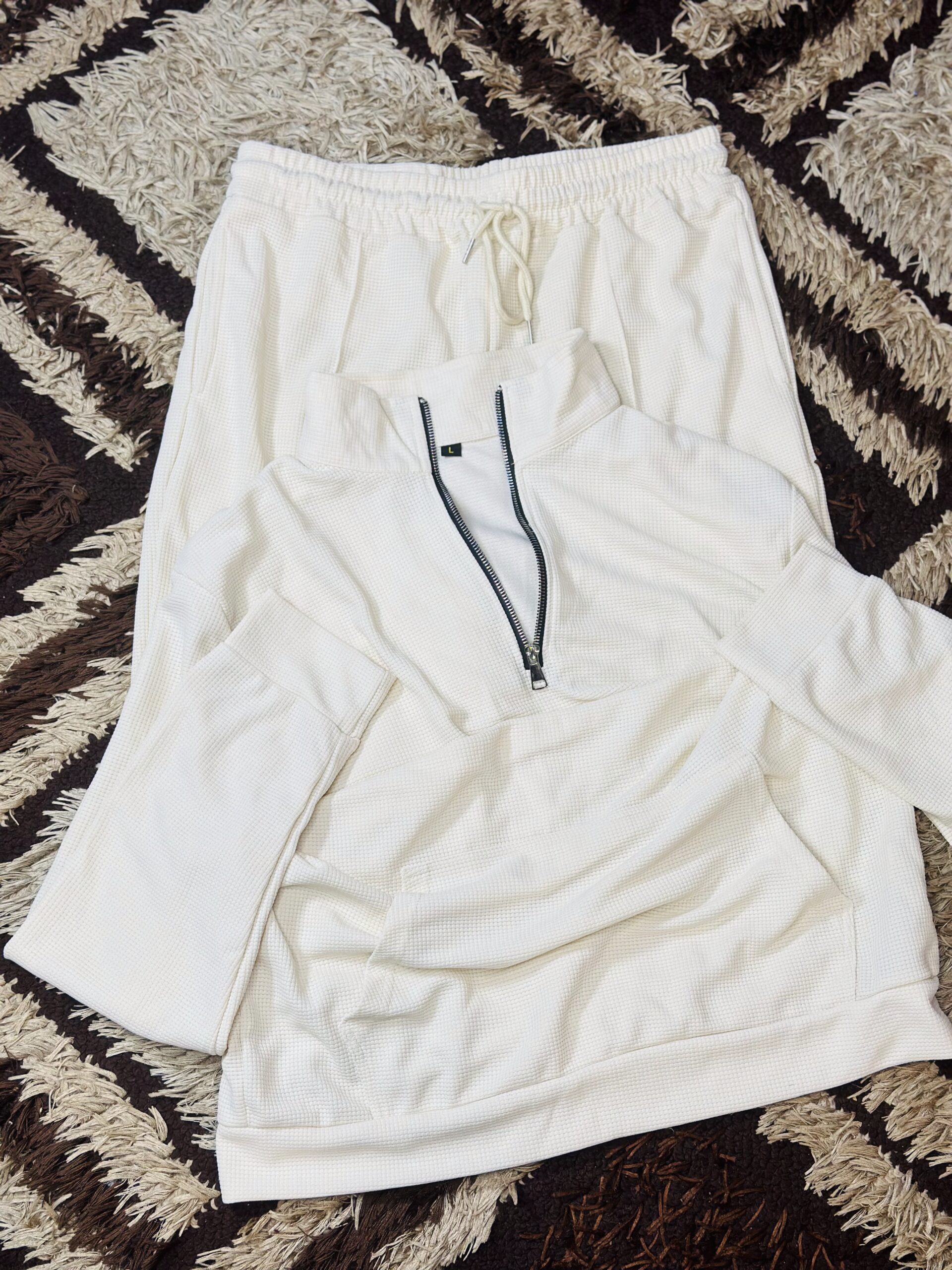 The COOFANDY Men Quarter Zip Tracksuit combines sporty design with everyday versatility. The quarter-zip long-sleeve top offers easy wear and adjustable ventilation, while the matching wide-leg pants give a relaxed, contemporary silhouette that’s perfect for workouts, casual outings, or leisure days.