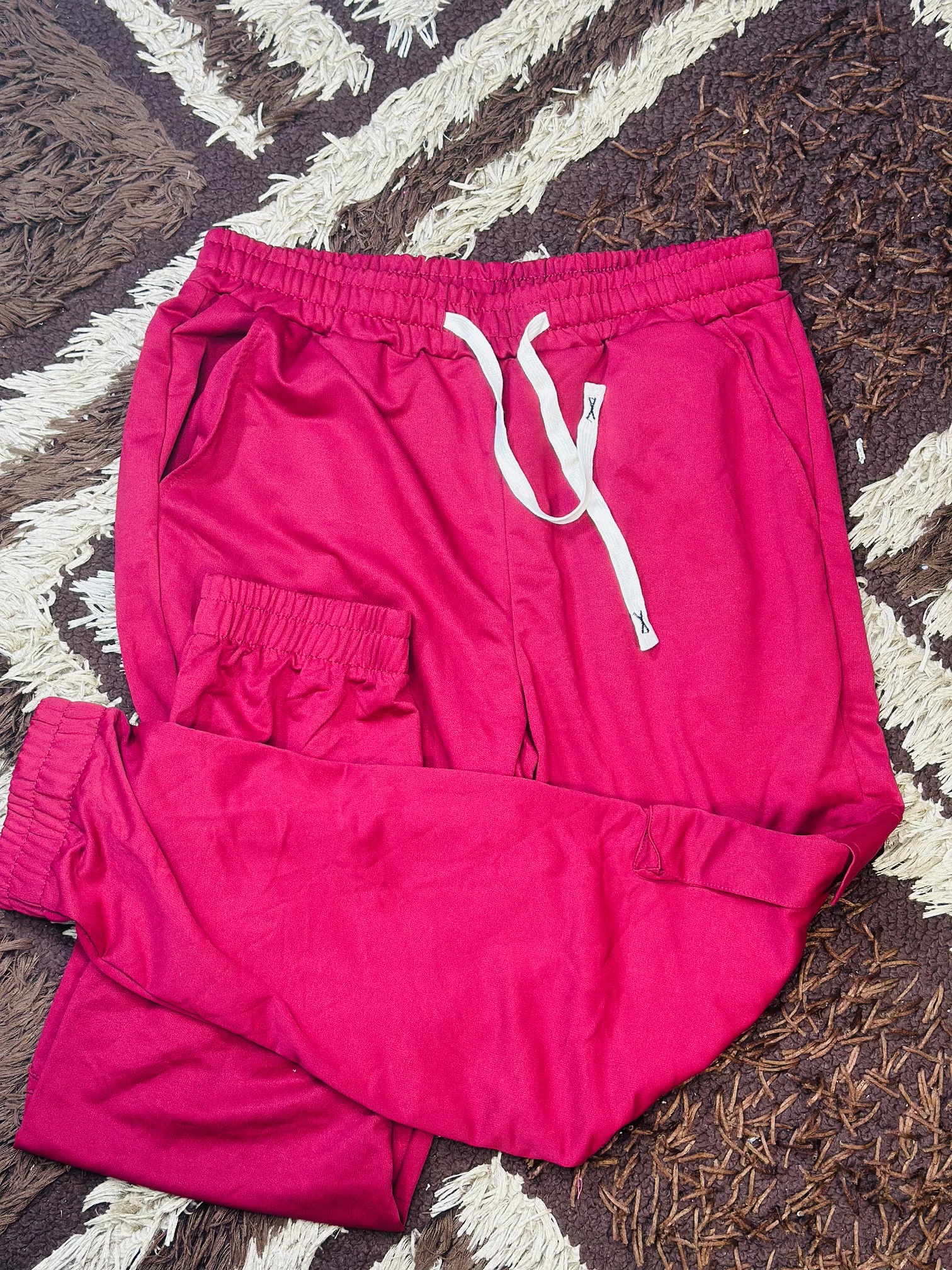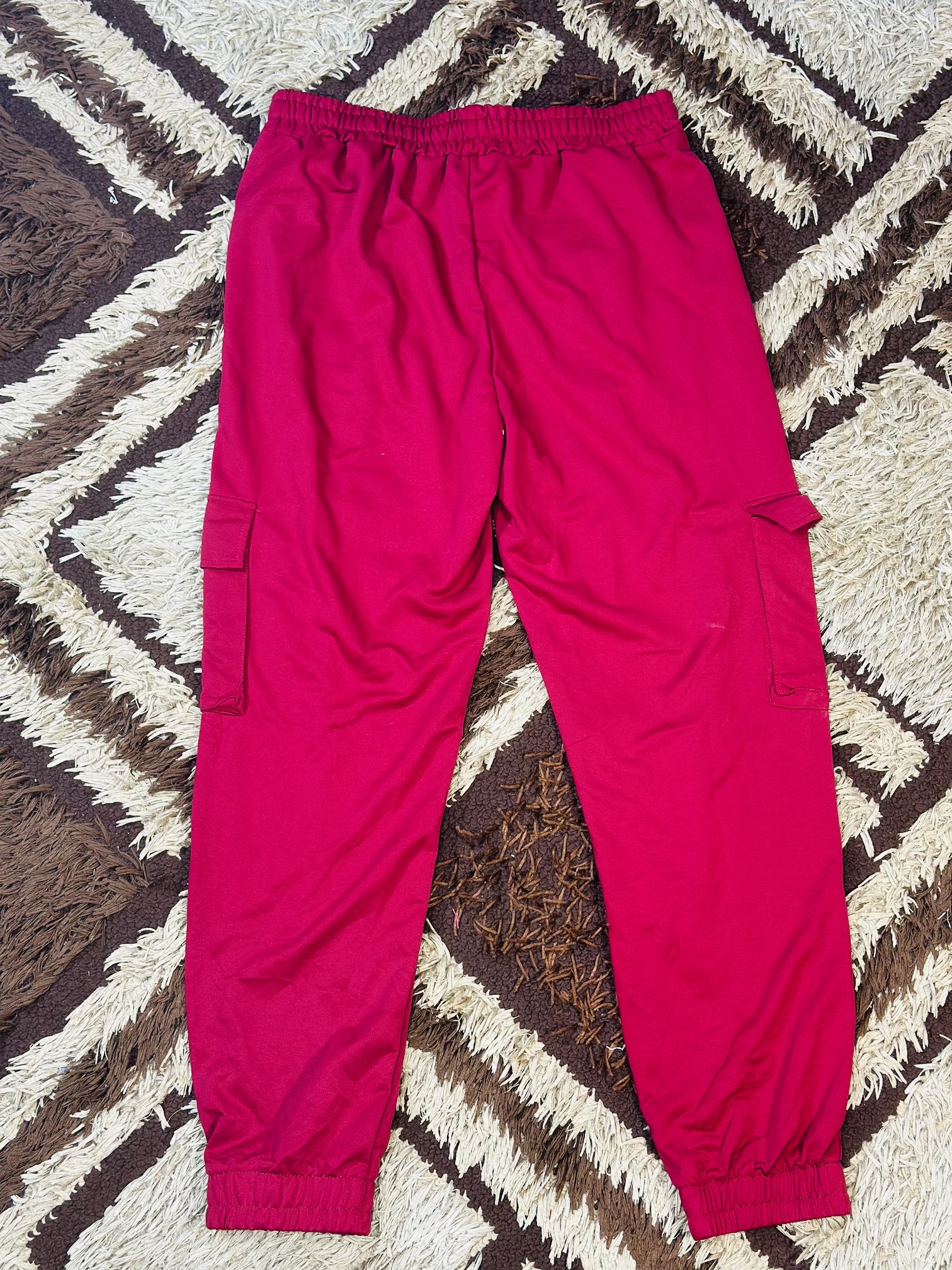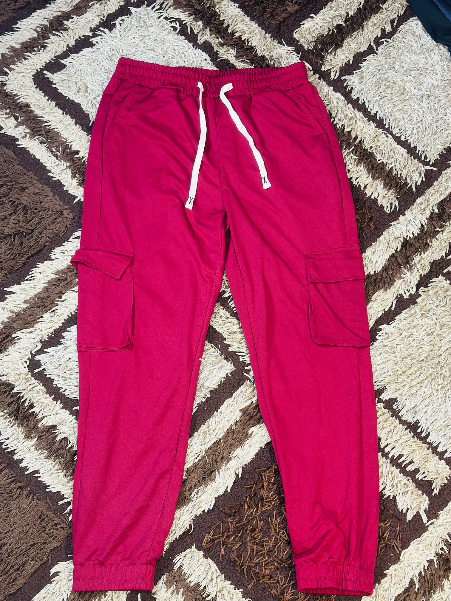 Featuring multiple cargo pockets for secure storage and an adjustable waistband for a tailored fit, these pants are as practical as they are fashionable. The rich burgundy color adds a bold touch that pairs perfectly with tees, hoodies, or casual jackets for a modern, laid‑back look.