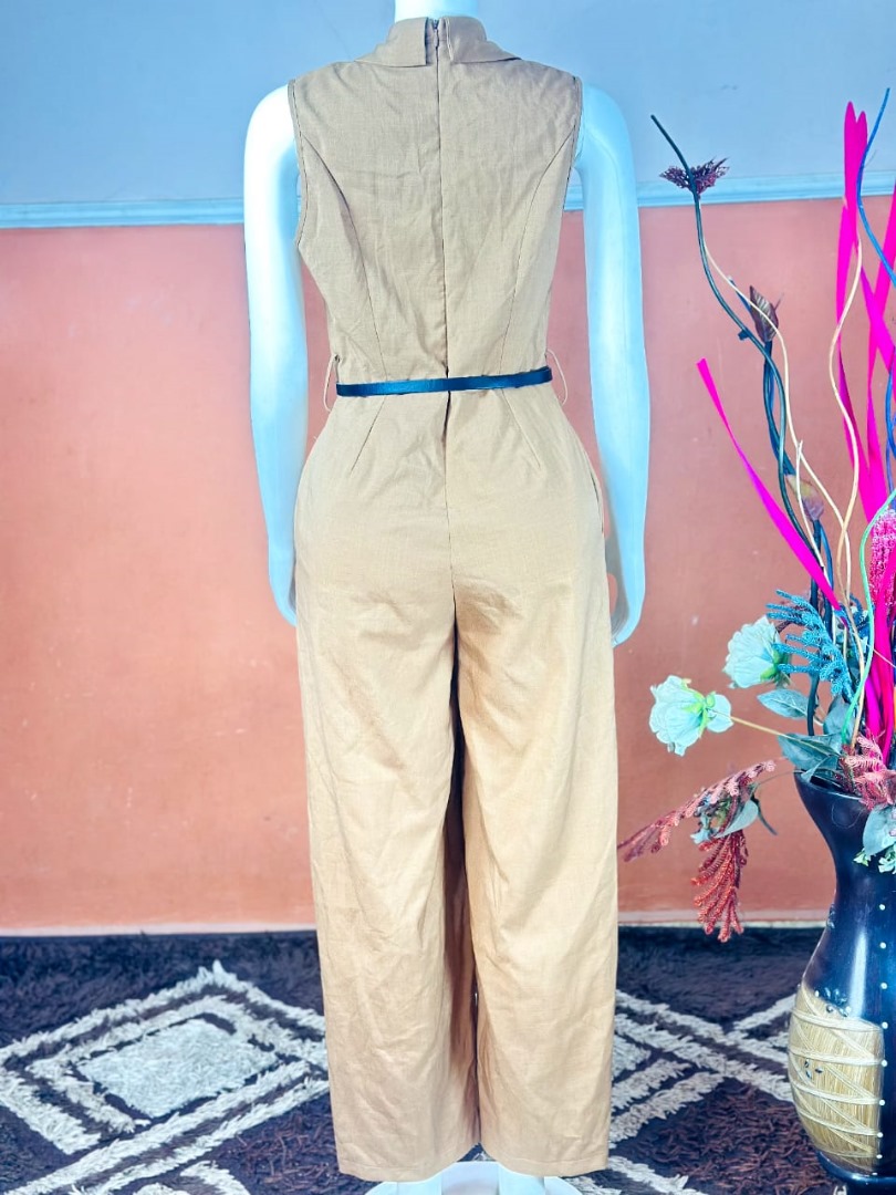 The functional pockets add convenience, while the included belt cinches the waist to enhance your silhouette. Ideal for casual outings, workwear styling, brunch dates, or smart-casual events, this jumpsuit is an effortless all-in-one outfit that keeps you looking polished with minimal effort.