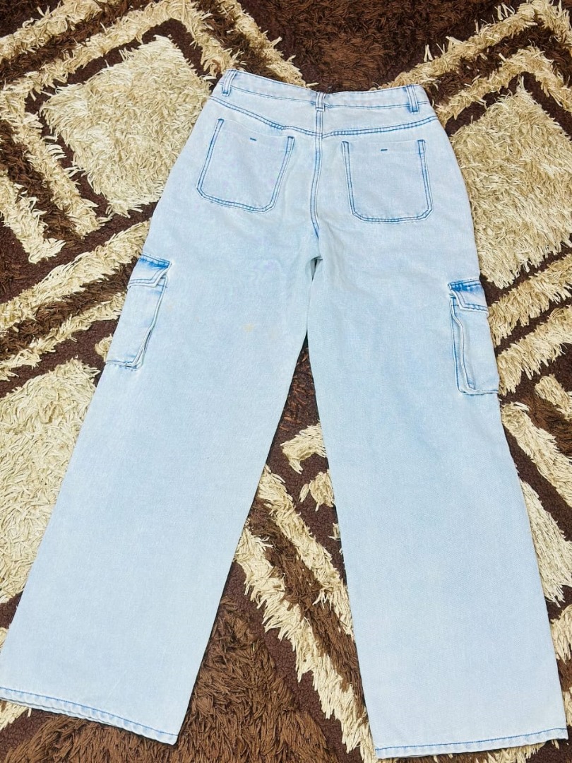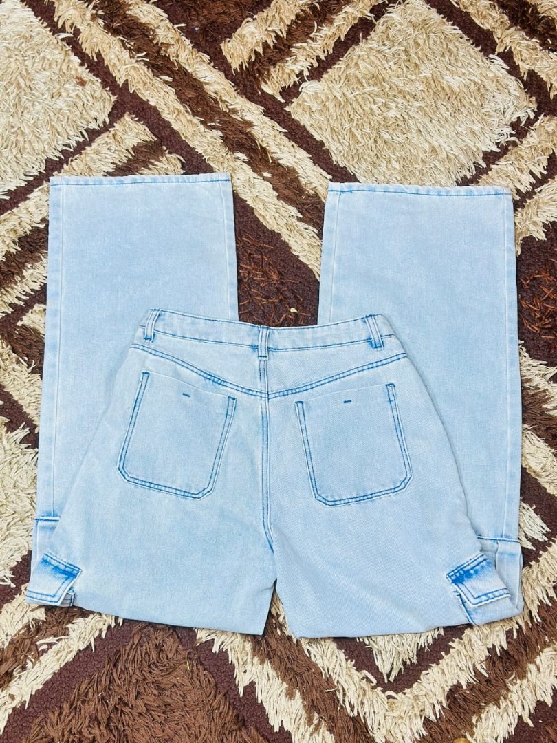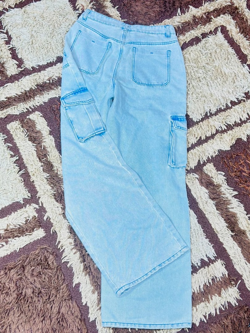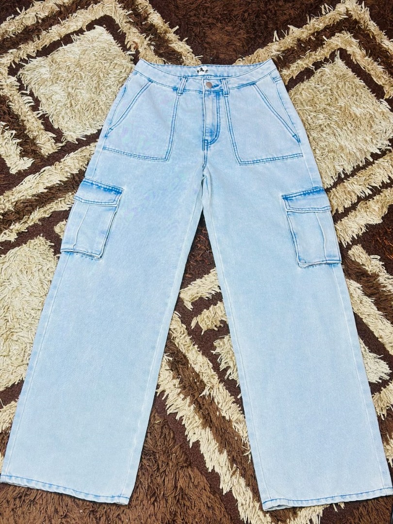 The Light Blue Wide-Leg Cargo Denim Jeans combine classic denim style with a contemporary cargo-inspired design. Featuring a relaxed wide-leg fit and functional cargo pockets, these jeans offer both fashion and practicality.