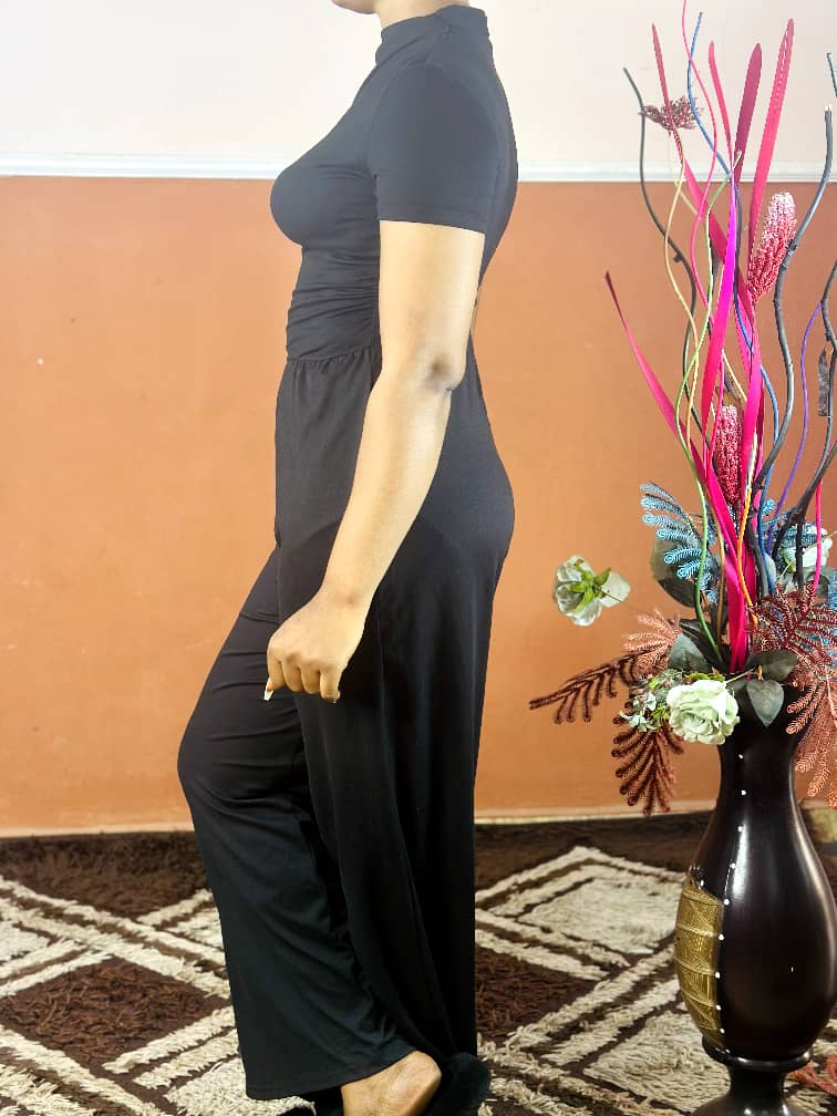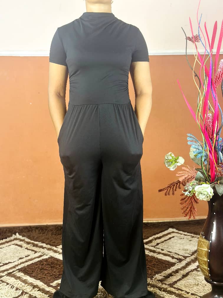 The Black Ribbed Knit Comfy Jumpsuit with Pockets is designed for effortless style and all-day comfort. Made from soft, stretchable ribbed knit fabric, it hugs the body while allowing ease of movement.