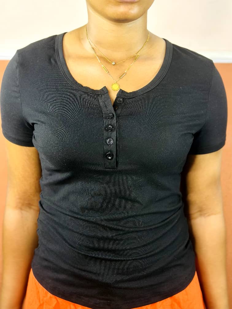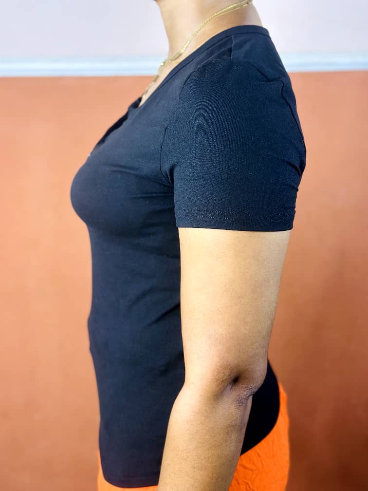 The Black Short-Sleeve Henley Top combines simplicity and style, making it a wardrobe essential. Crafted from soft, breathable fabric, it ensures comfort and flexibility for all-day wear.