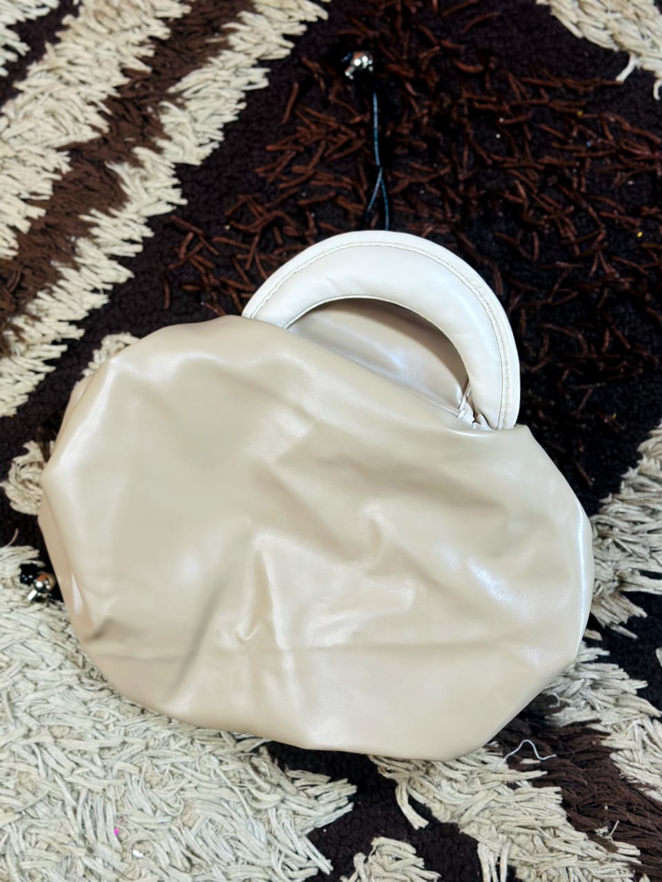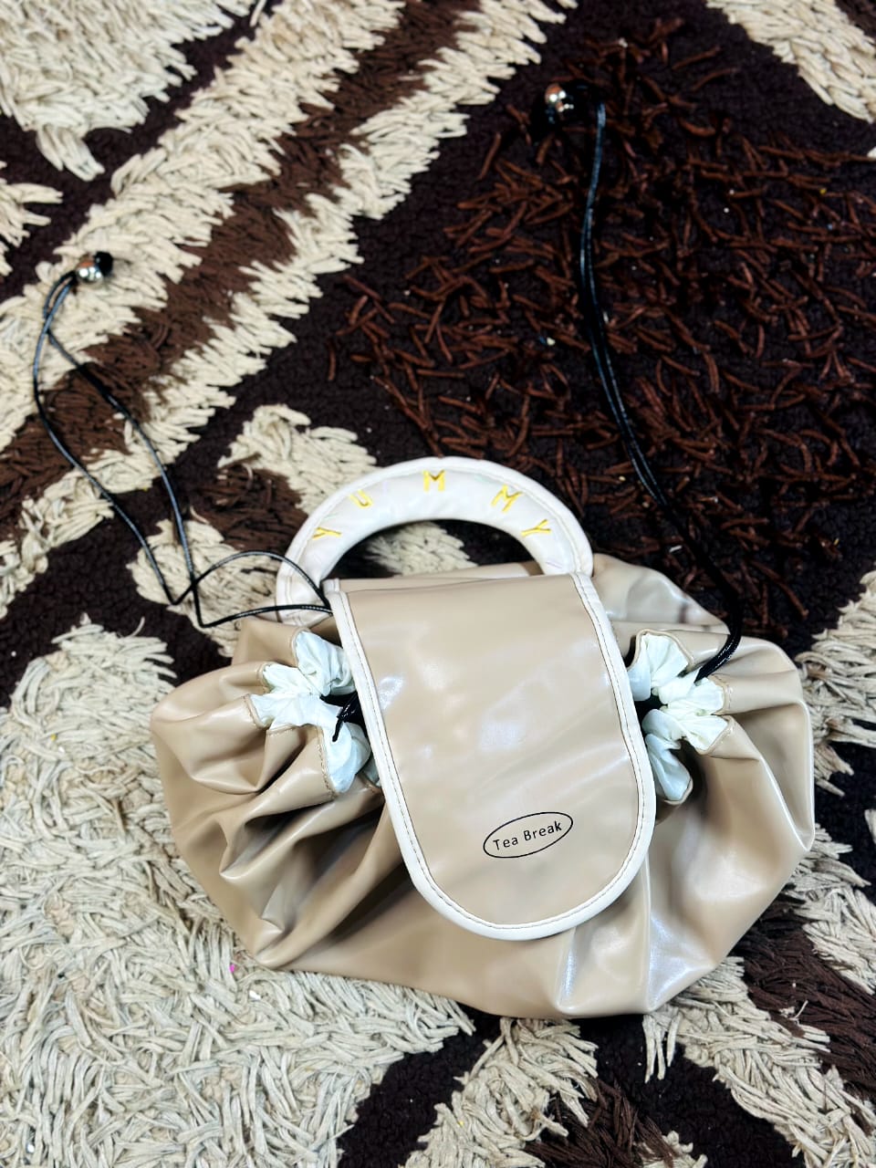 Beige drawstring cosmetic travel bag
