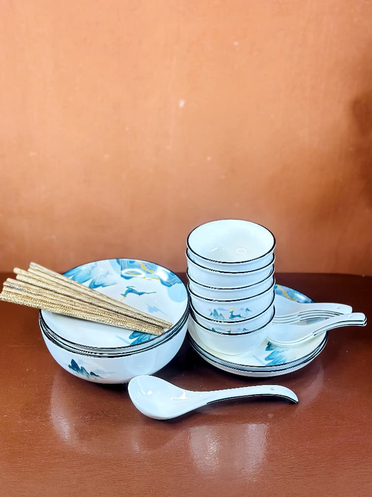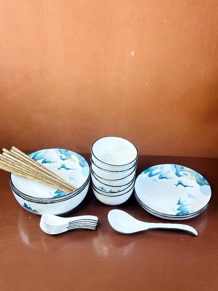 This ceramic tableware set is made for people who appreciate elegant dining and artistic design. The packaging features classic Asian-inspired illustrations, giving it a premium and gift-worthy appearance.