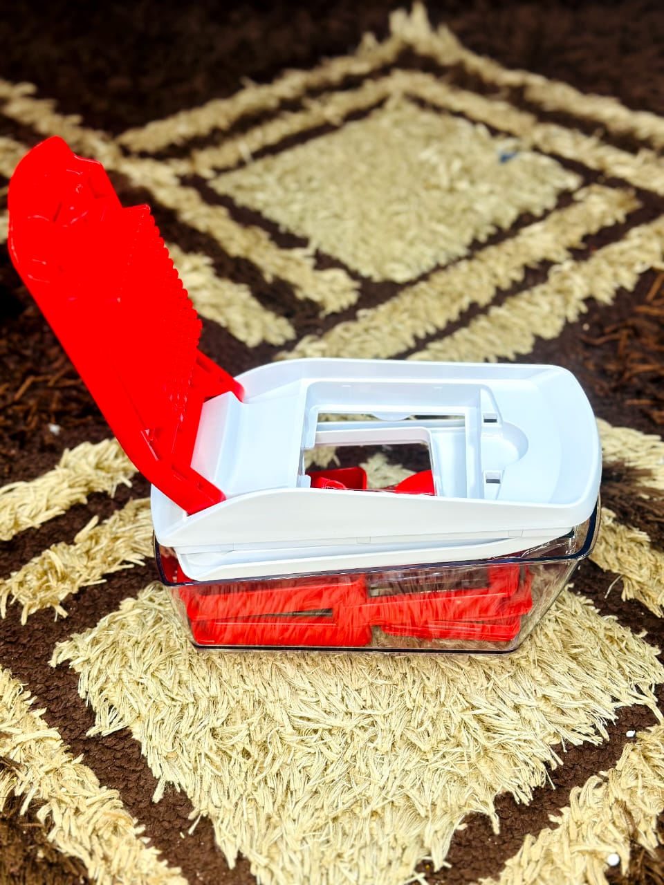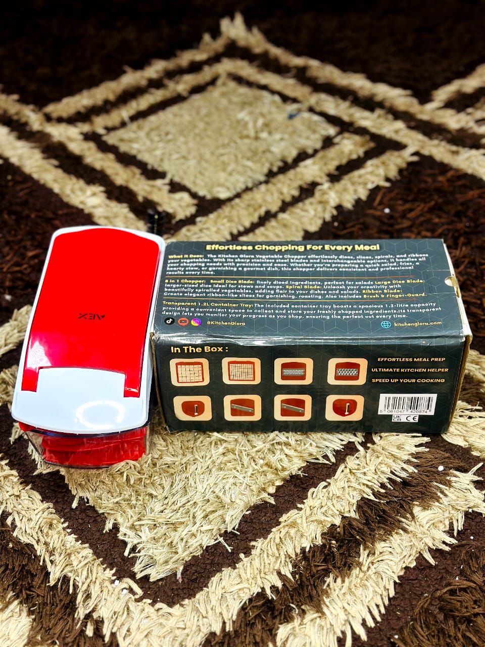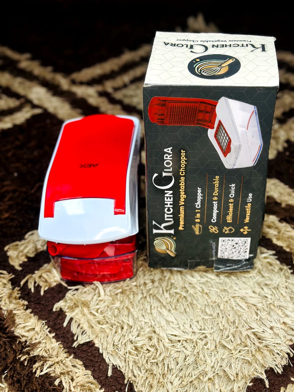 This chopper features an 8-in-1 design, allowing you to cut, dice, and chop vegetables in different styles using interchangeable blades. It is built to be compact, durable, and efficient, making it suitable for both small and busy kitchens.