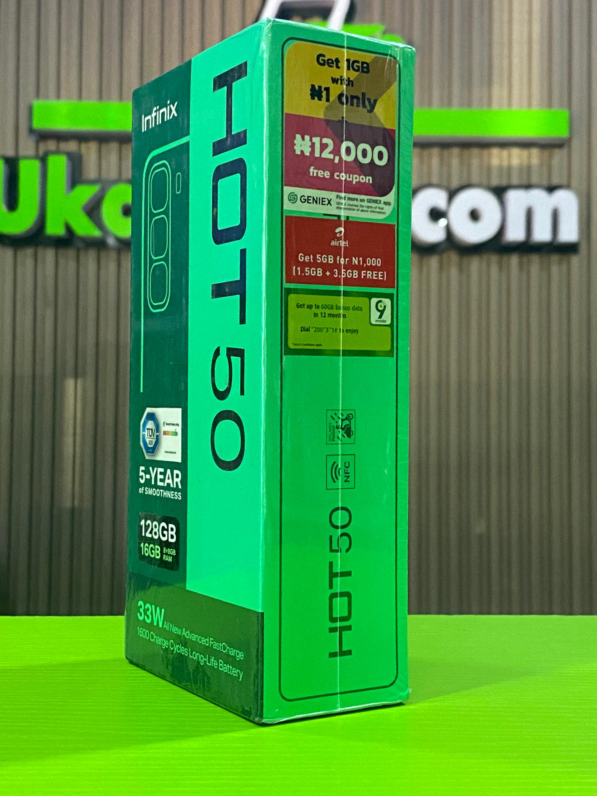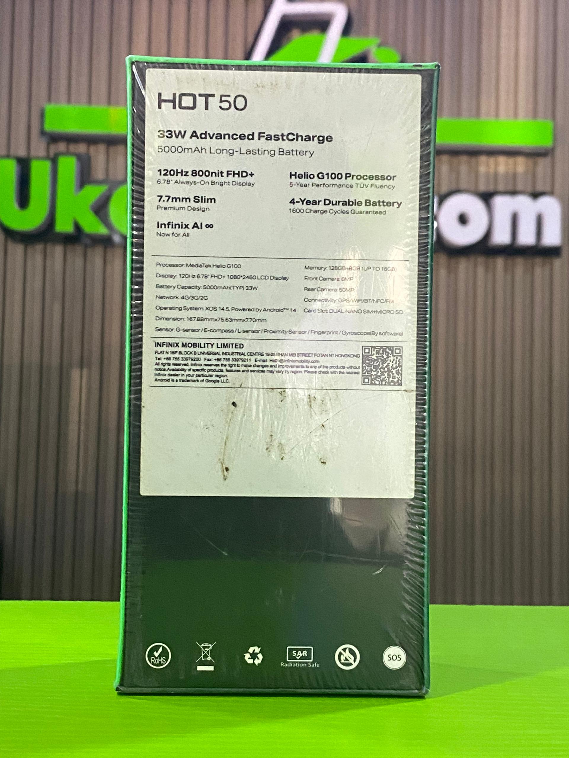 Experience lightning-fast performance and massive storage with the Infinix Hot 50 8GB RAM 128GB ROM. Designed for multitaskers and mobile gamers, this smartphone delivers smooth operation, vibrant display, and long-lasting battery life, all packed in a sleek, modern design. Whether streaming, browsing, or gaming, the Infinix Hot 50 ensures you never miss a beat.