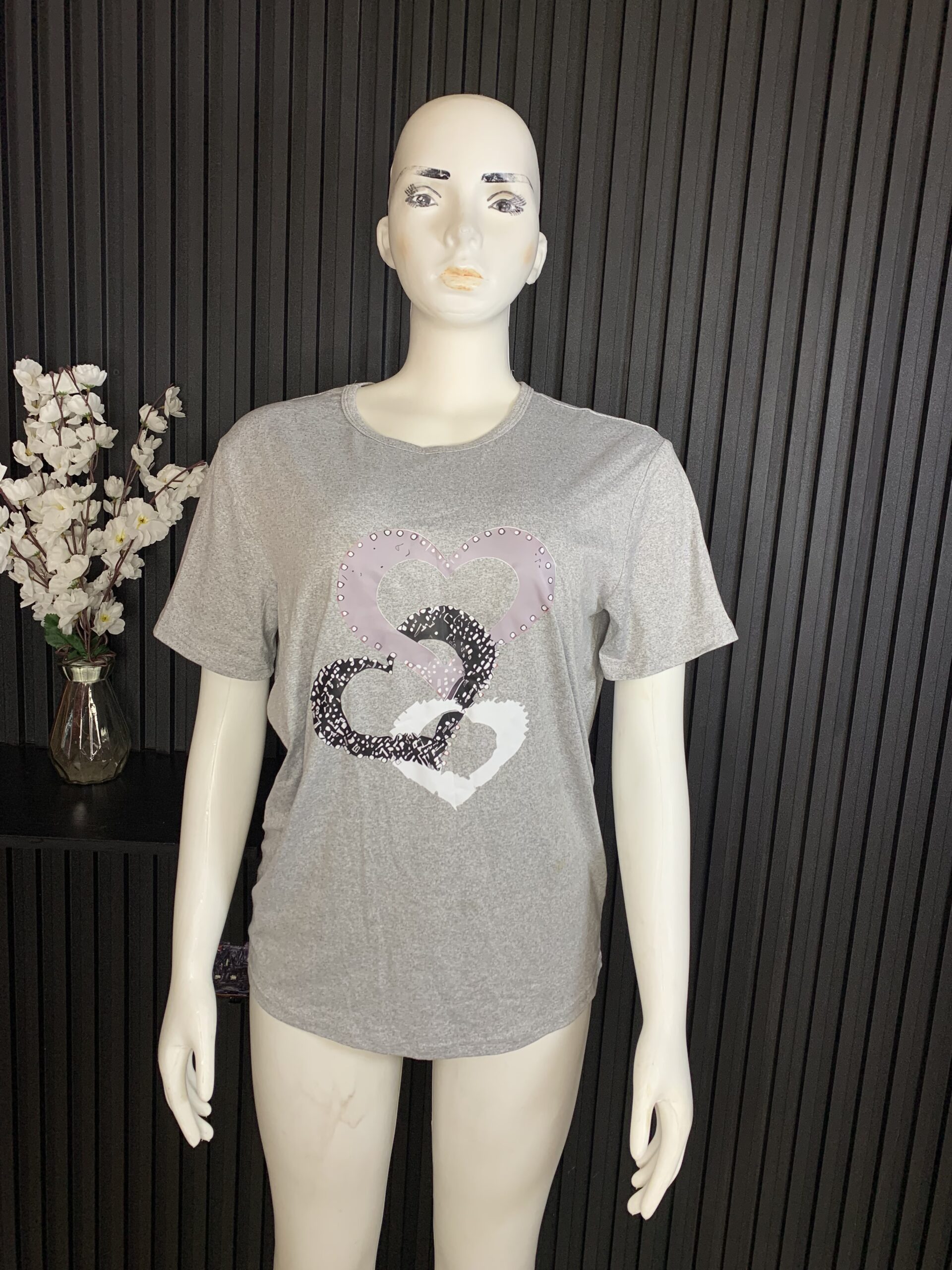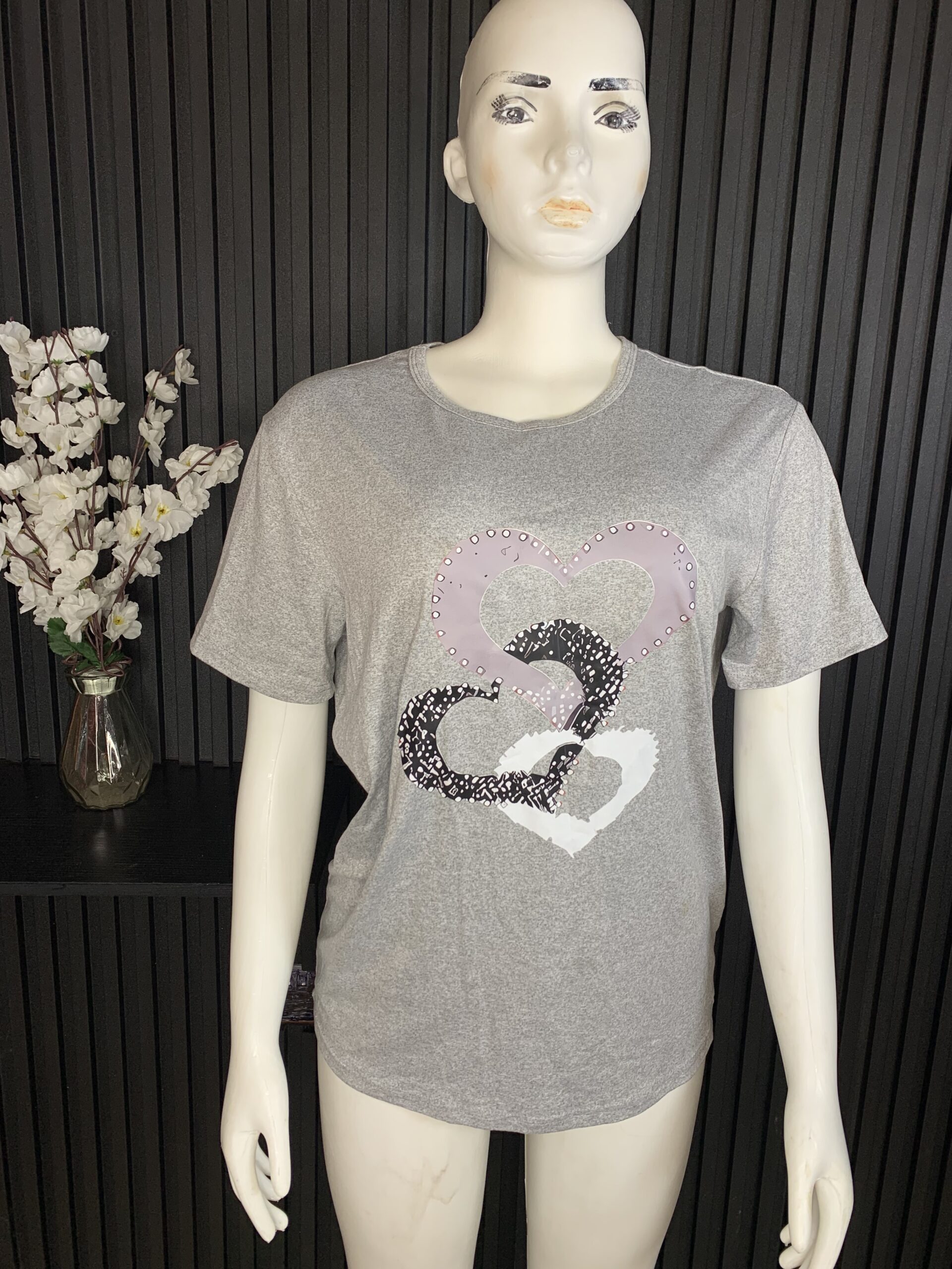 A casual chic soft grey top, featuring a relaxed fit and eye catching embellished detail.