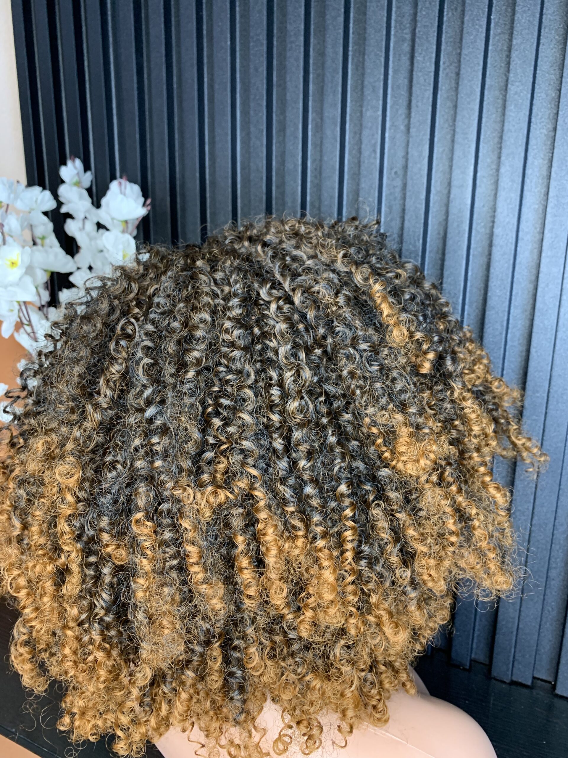 - Natural-looking afro curls
