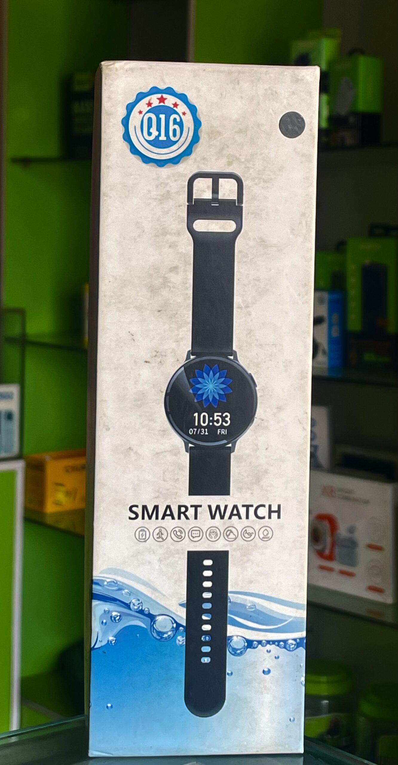 Stay connected and active with the Q16 Smartwatch. Track your heart rate, sleep, steps, and calories, get smart notifications, enjoy customizable watch faces, and rely on a long-lasting, water-resistant design – all in a sleek, modern look.