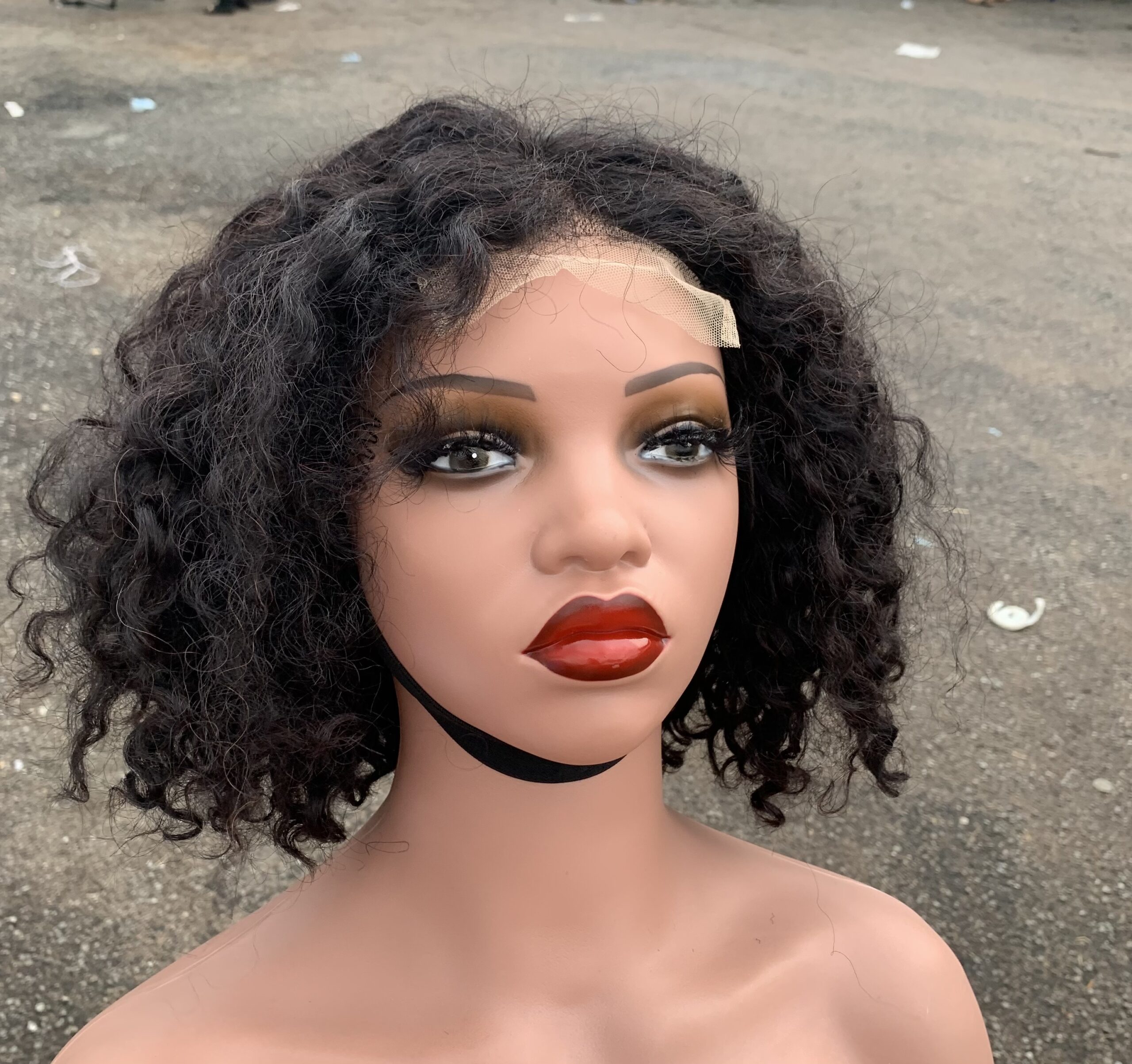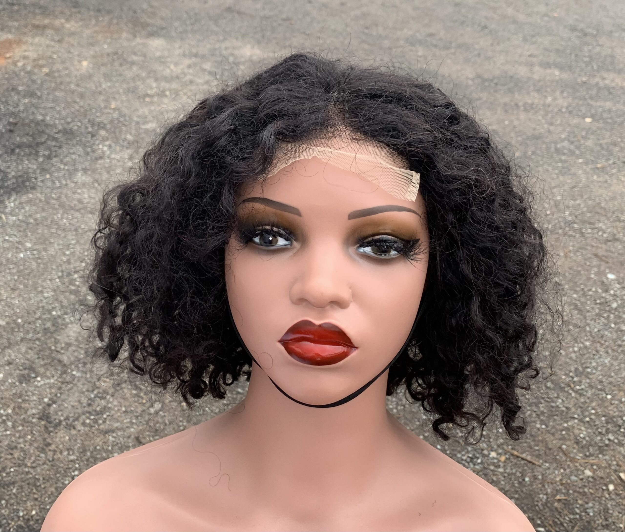 Premium Short Wig with Water Wave Style, Featuring A 4X4 Lace Closure, Made from Human Hair for Women. This Curly Bob Wig Is Very Full