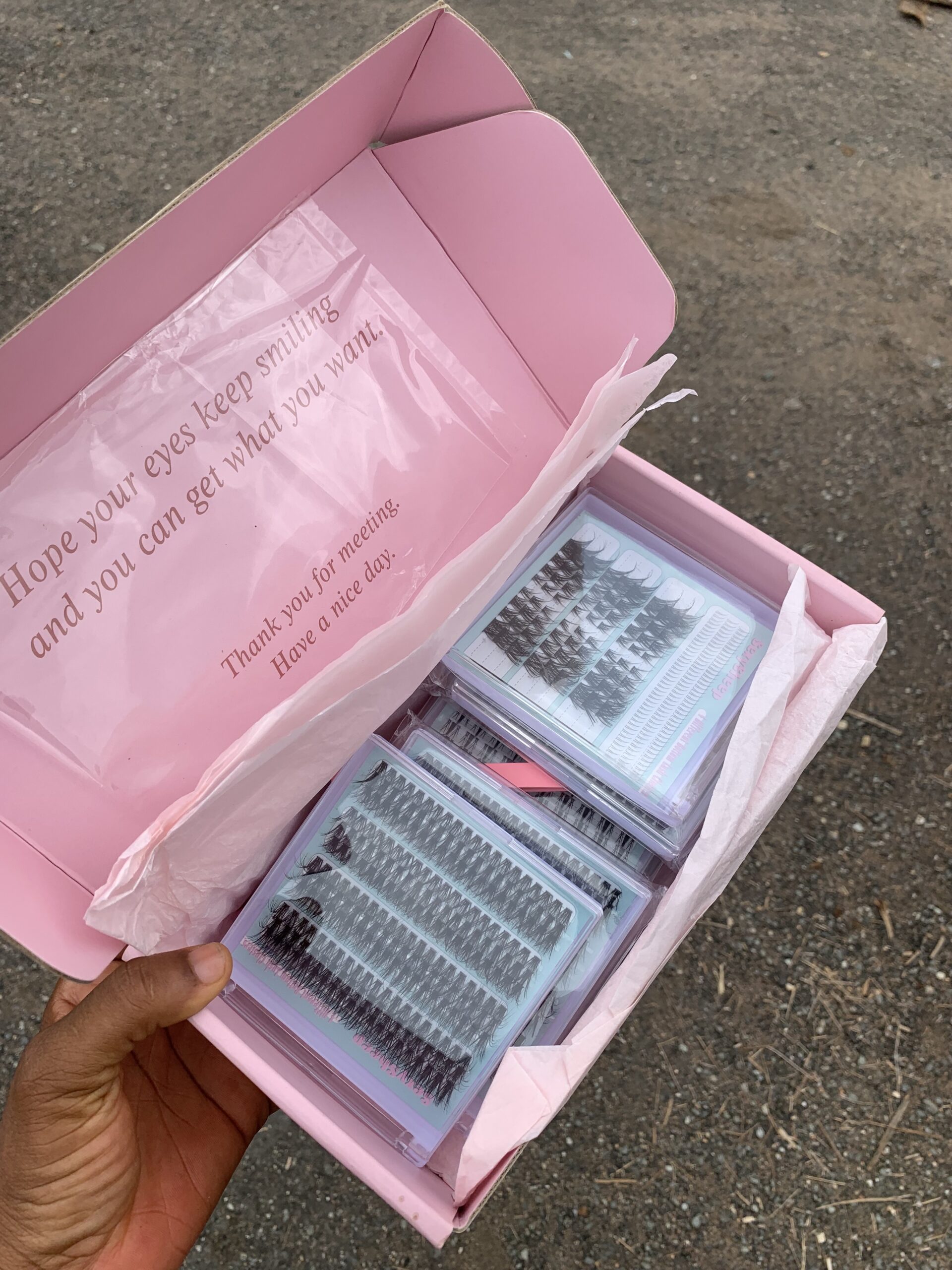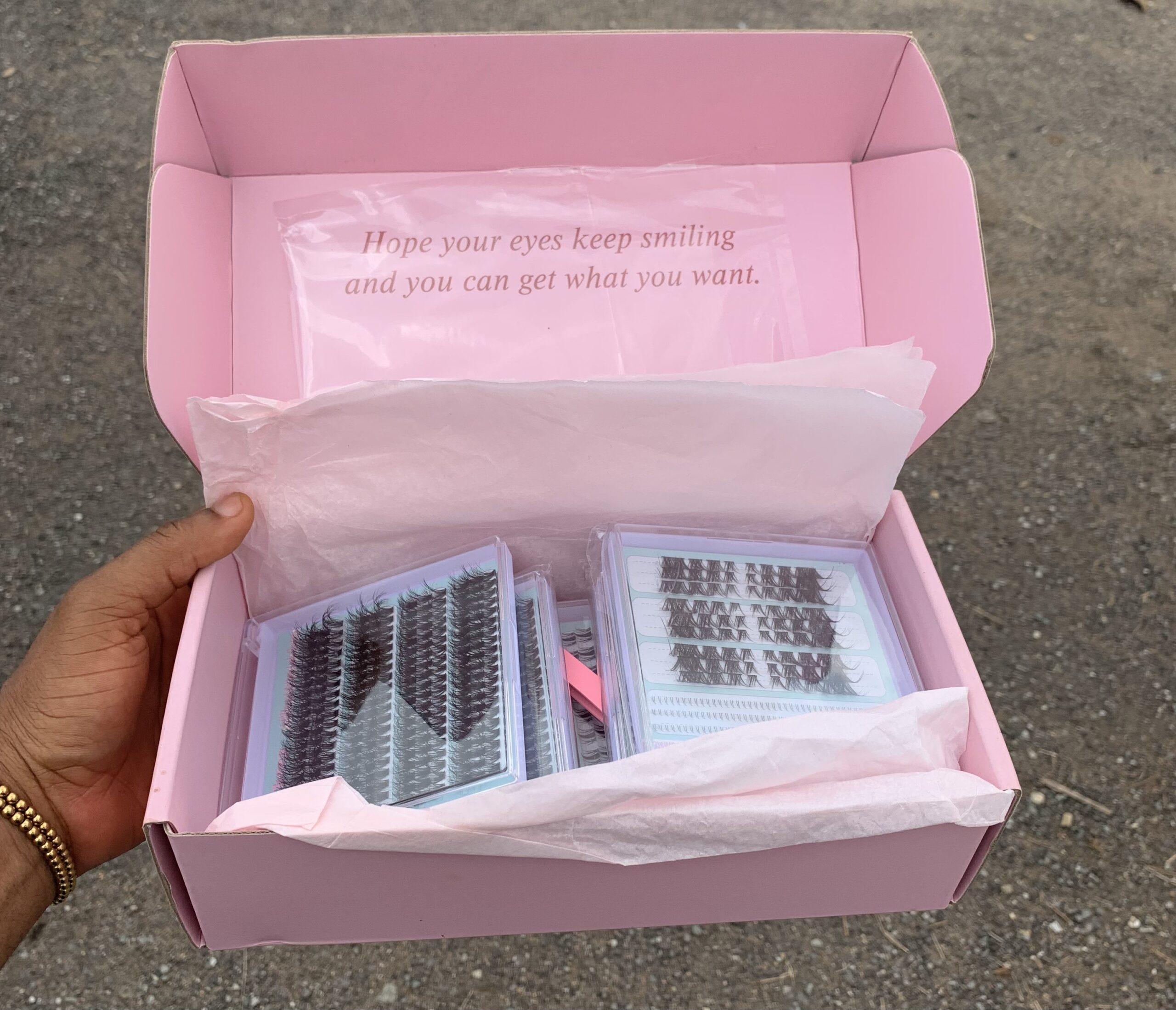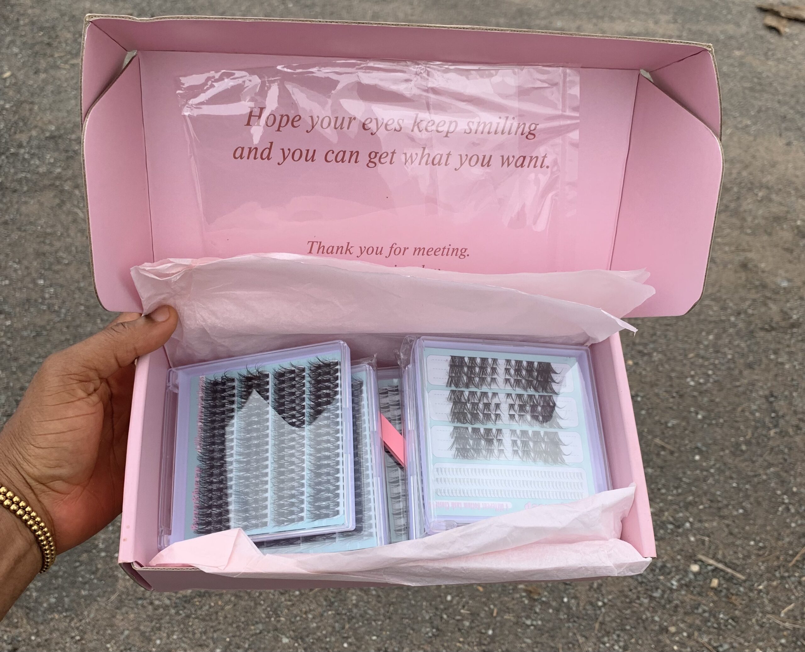 Stylish 6ps Of Homemade Eyelash Extension Kits, Large Capacity, Including Lash Bond And Seal, Mascara wand And Makeup Tweezer, Mixed Styles, Fluffy, Clustered, Reusable, D Curl, 13-15Mm, Suitable for Beginners, Fun For Home, A Gift For Friends And Family