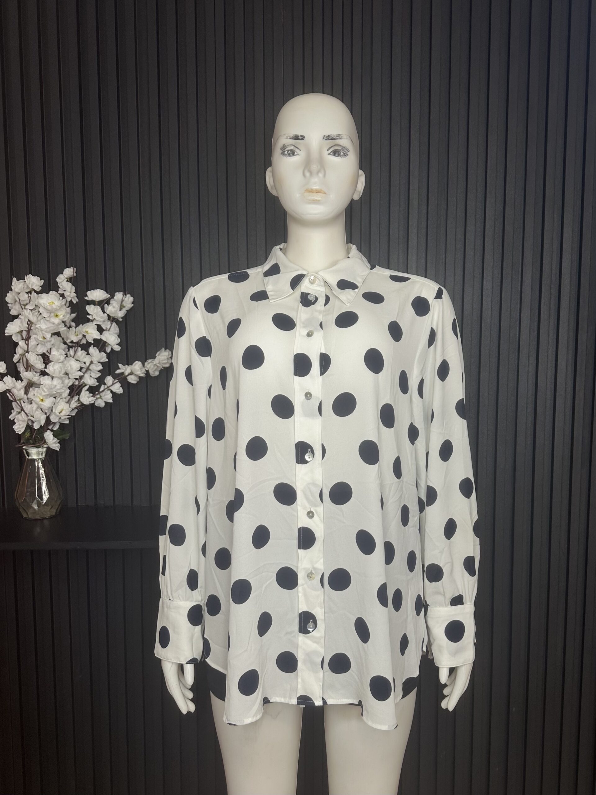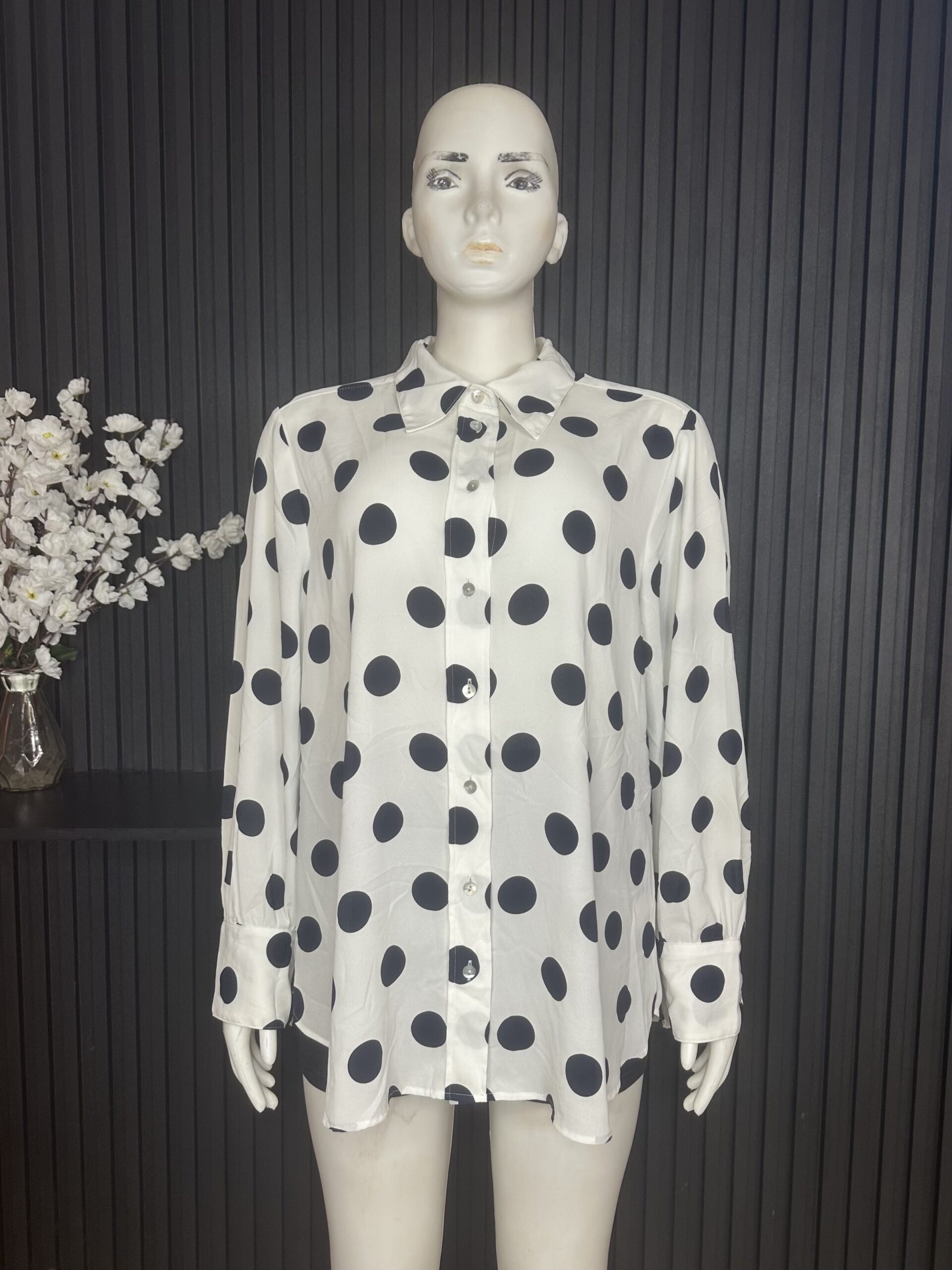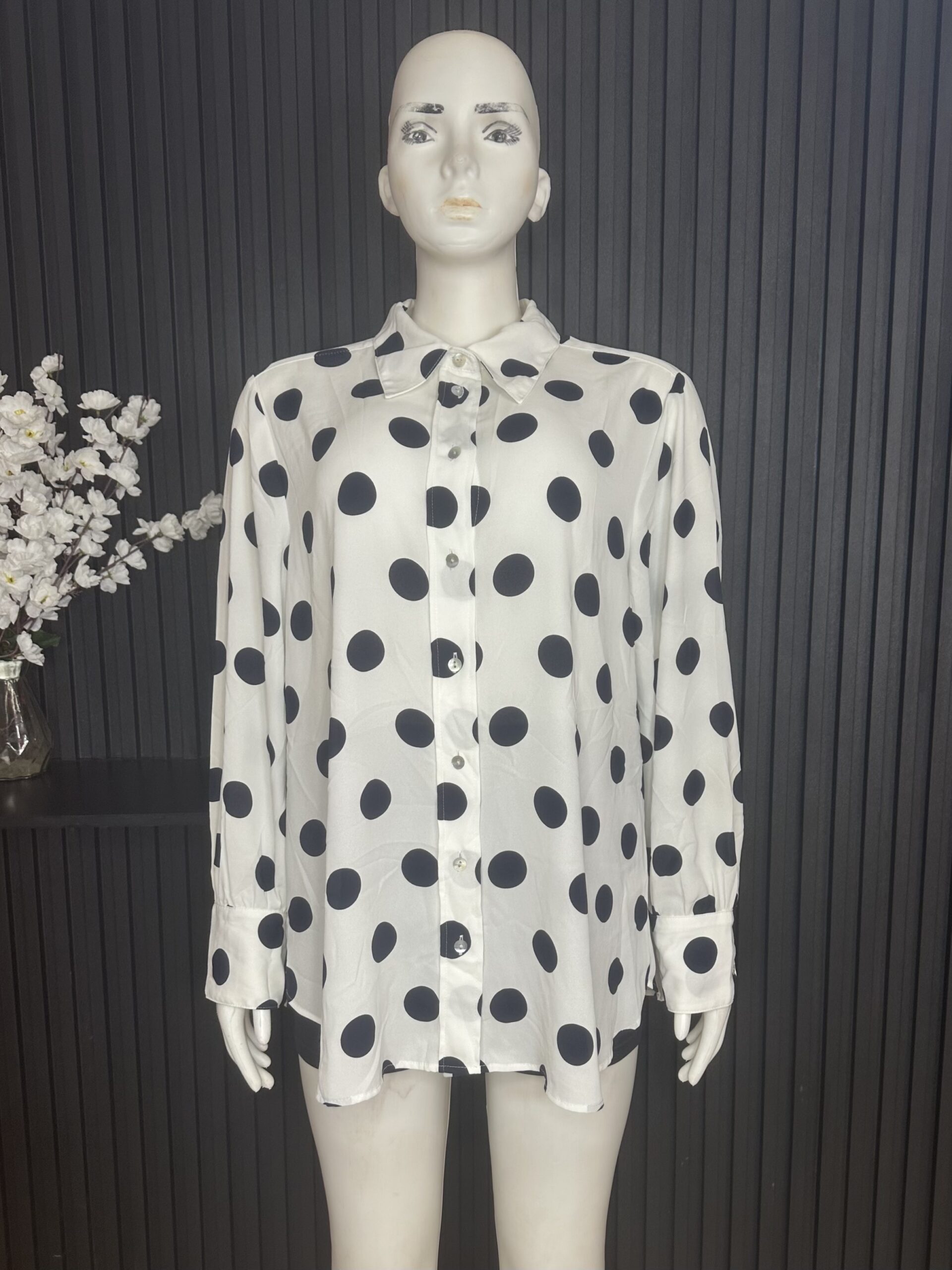 Elegant Chic Polka Dot Shirt Dress, Designed To Combine Elegance With Everyday Comfort. Featuring A Classic Button-Up Front And Long Sleeves, This Stylish Piece Offers A Relaxed Yet Flattering Fit.