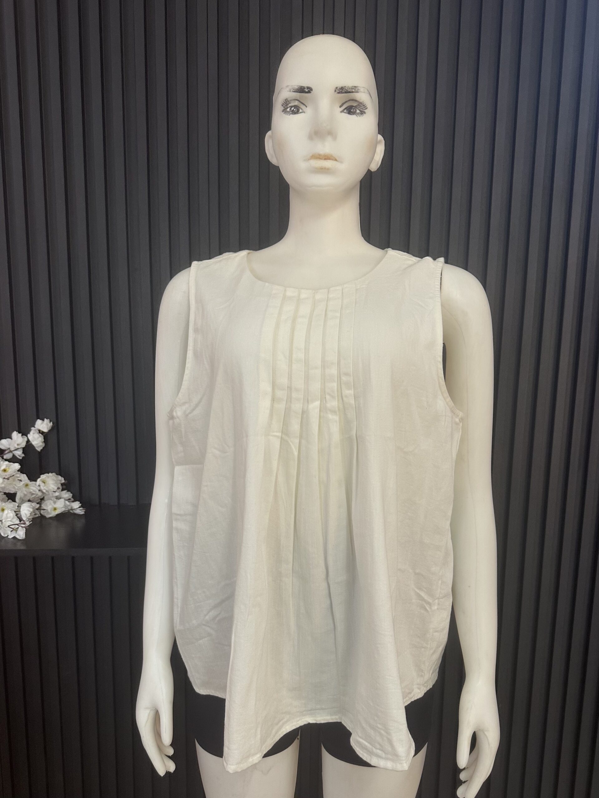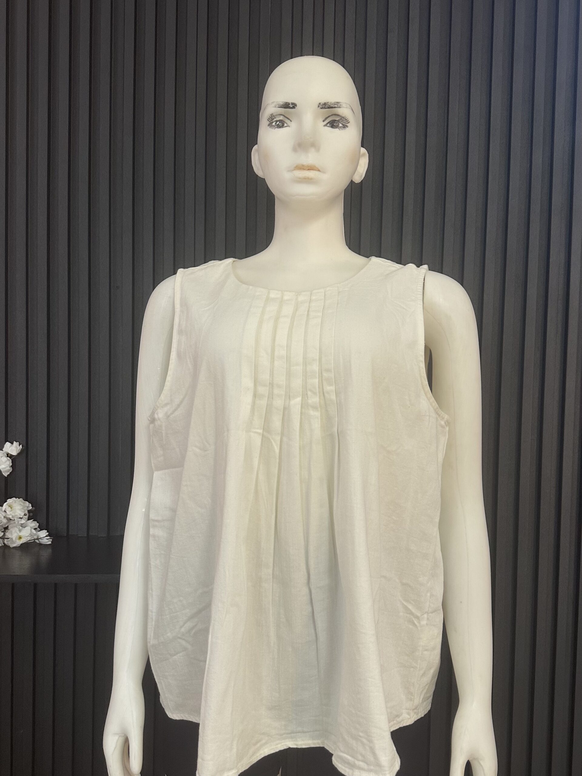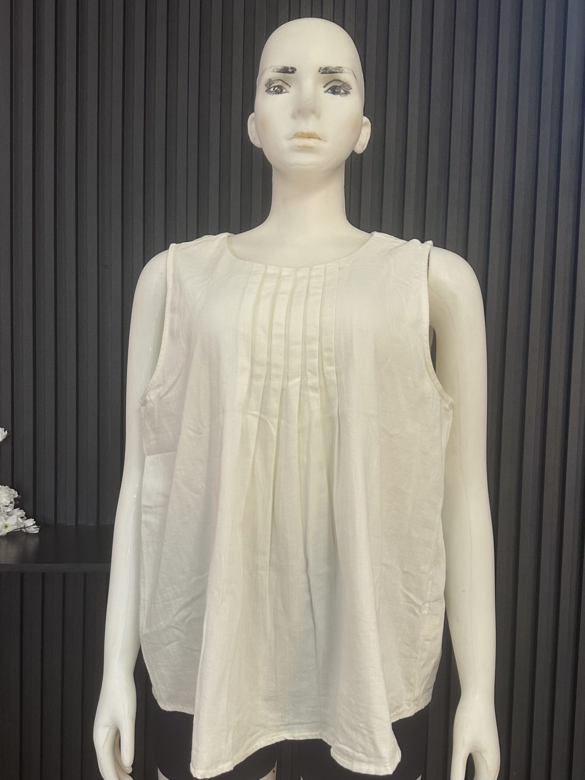 Effortless Elegance For Your Wardrobe With This Sleeveless Pleated Blouse, Created For Comfort And Style. Styled With A Soft Round Neckline And Delicate Front Pleats, This Top Delivers A Relaxed And Flowy Fit That Flatters All Body Types. Made From Lightweight And Breathable Fabric, It Keeps You Cool And Comfortable All Day Long.