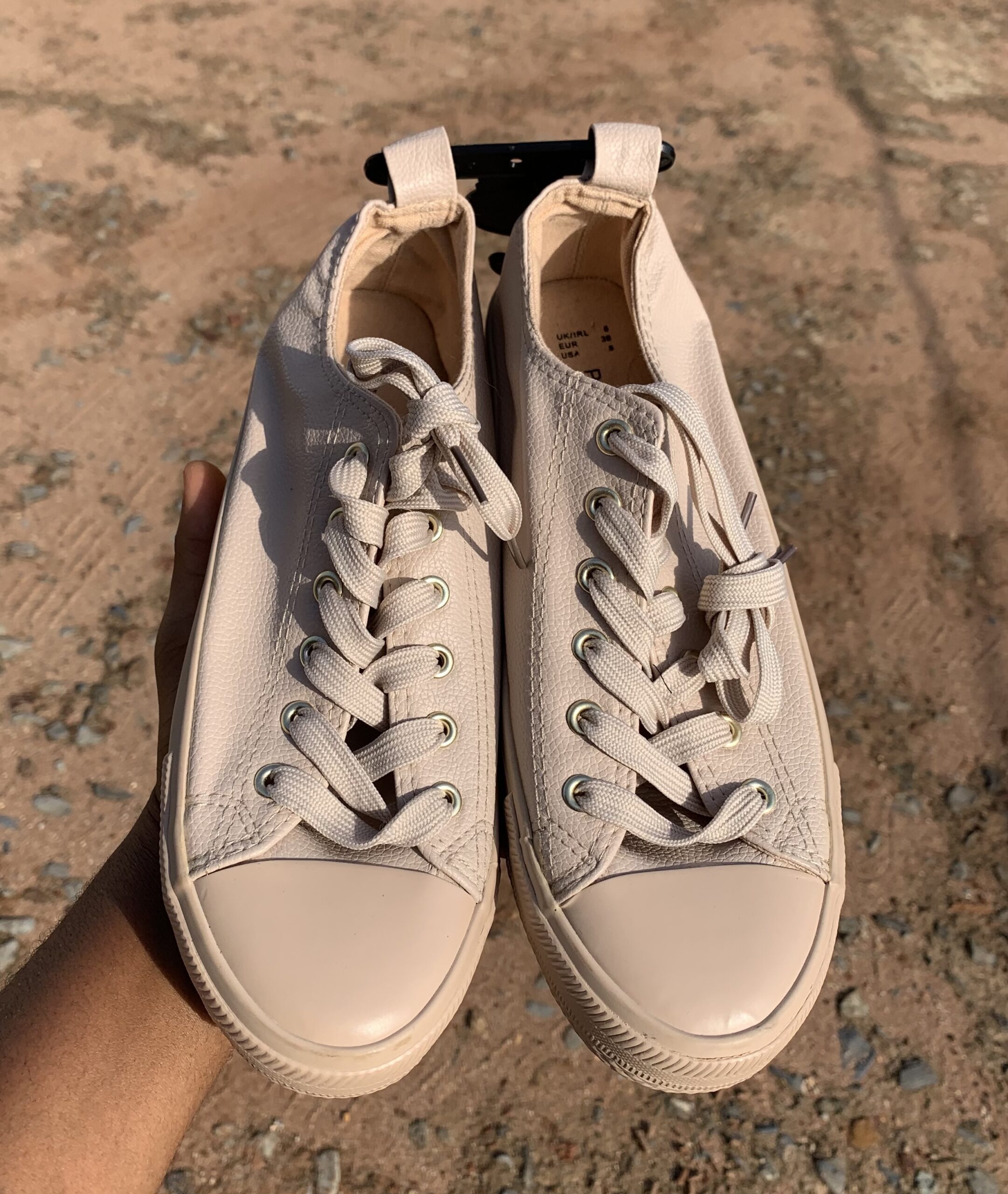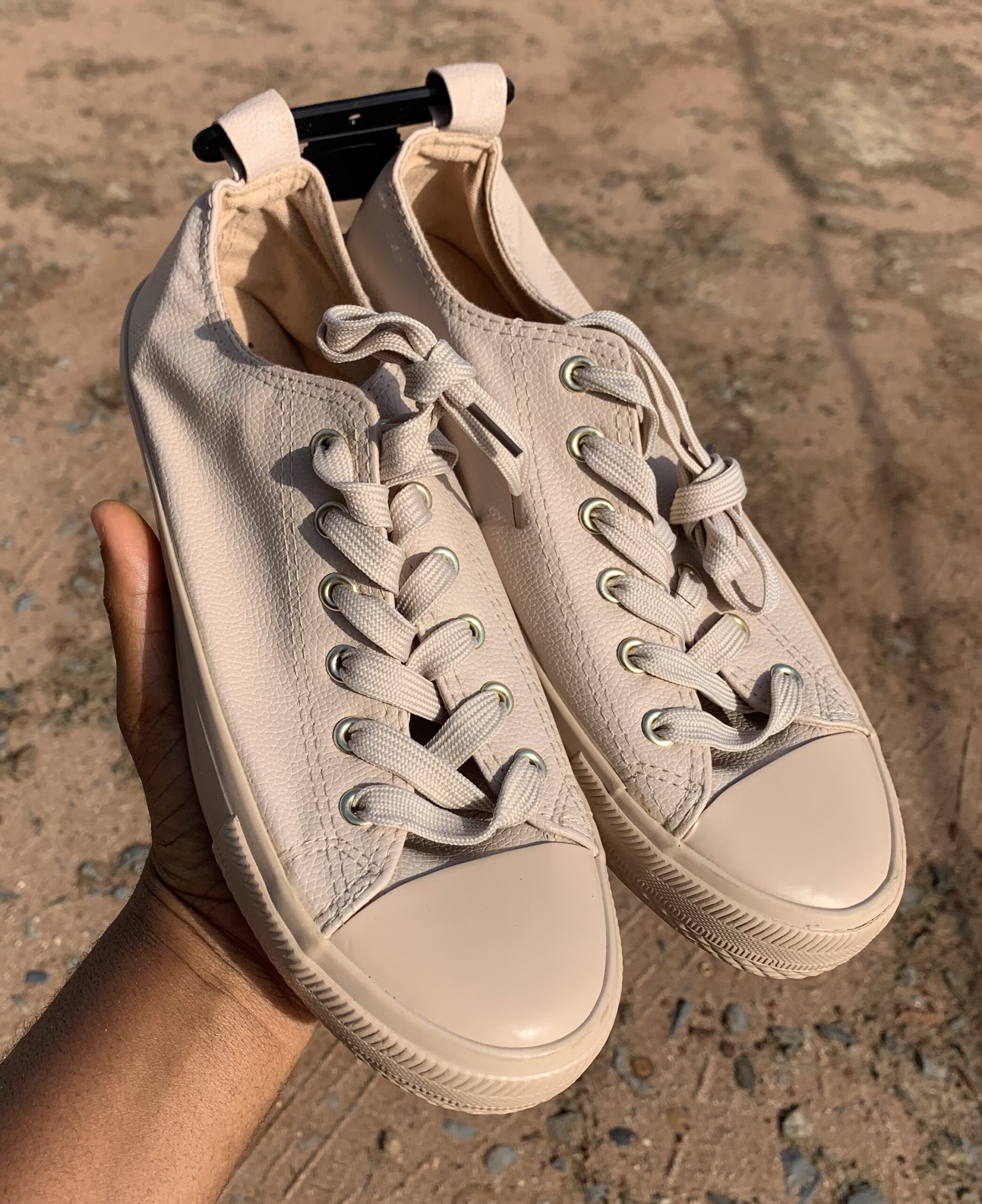 Stylish Sleek Nude Lace Up Sneakers With A Textured Finish, Cushioned Comfort, And Durable Sole Perfect For Effortless Everyday Style.