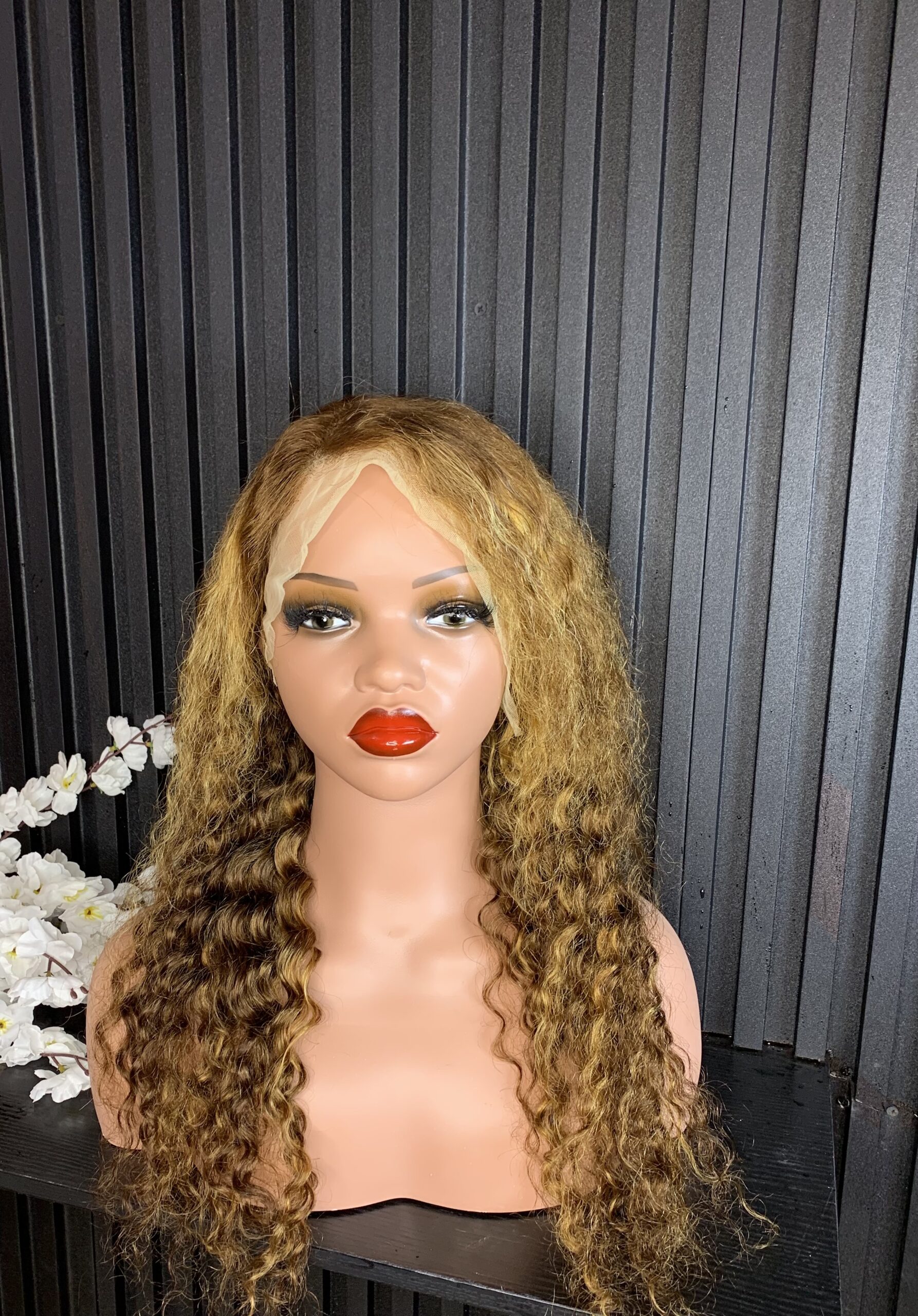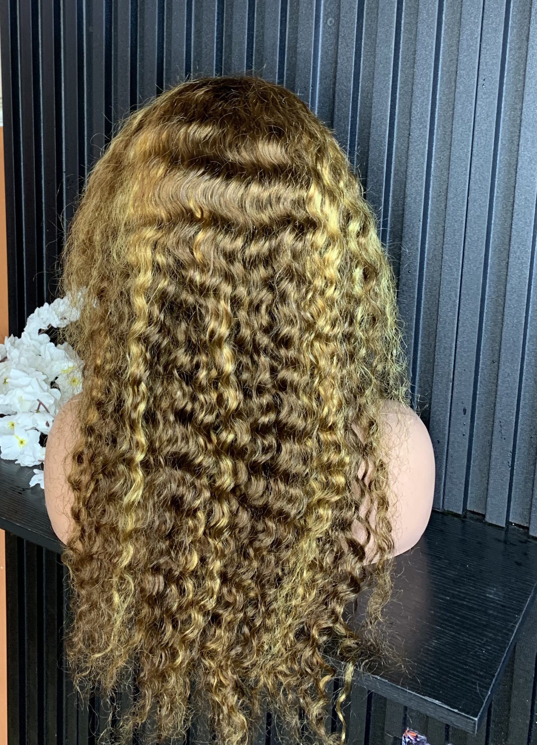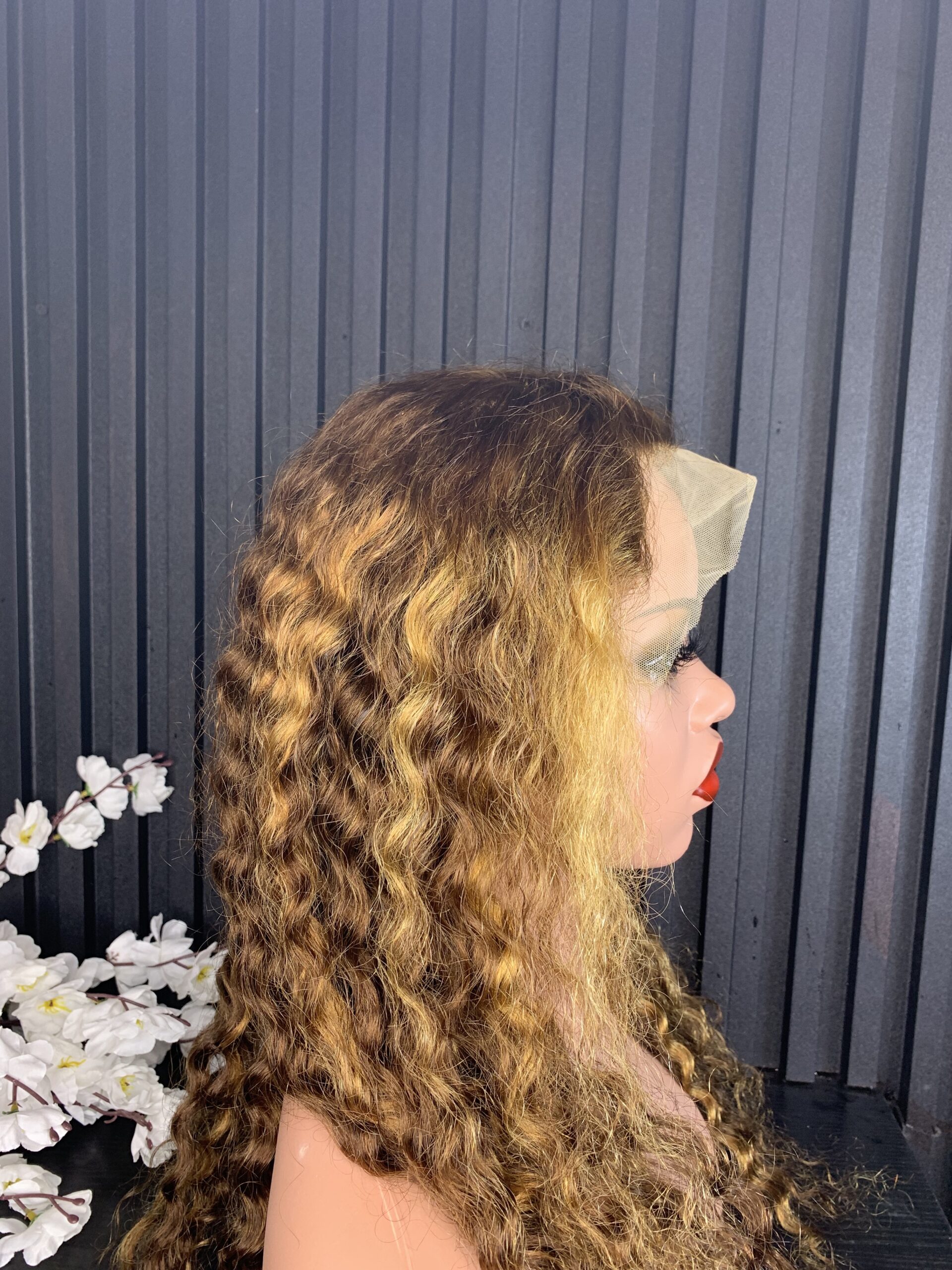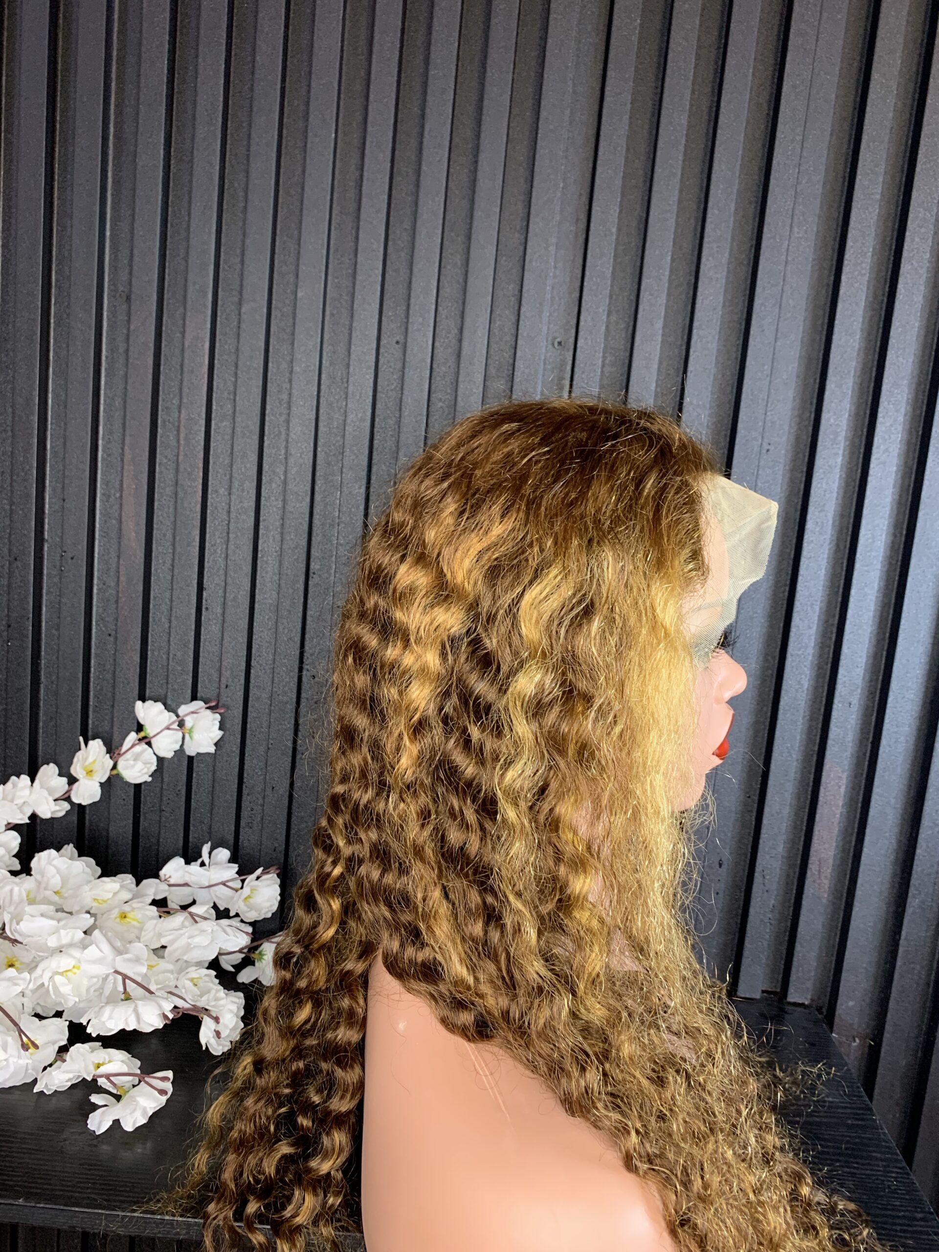 Premium Jerry Curl Lace Frontal Human Hair Wig For Women, Piano Color, Chic And Elegant Look, Voluminous Curls