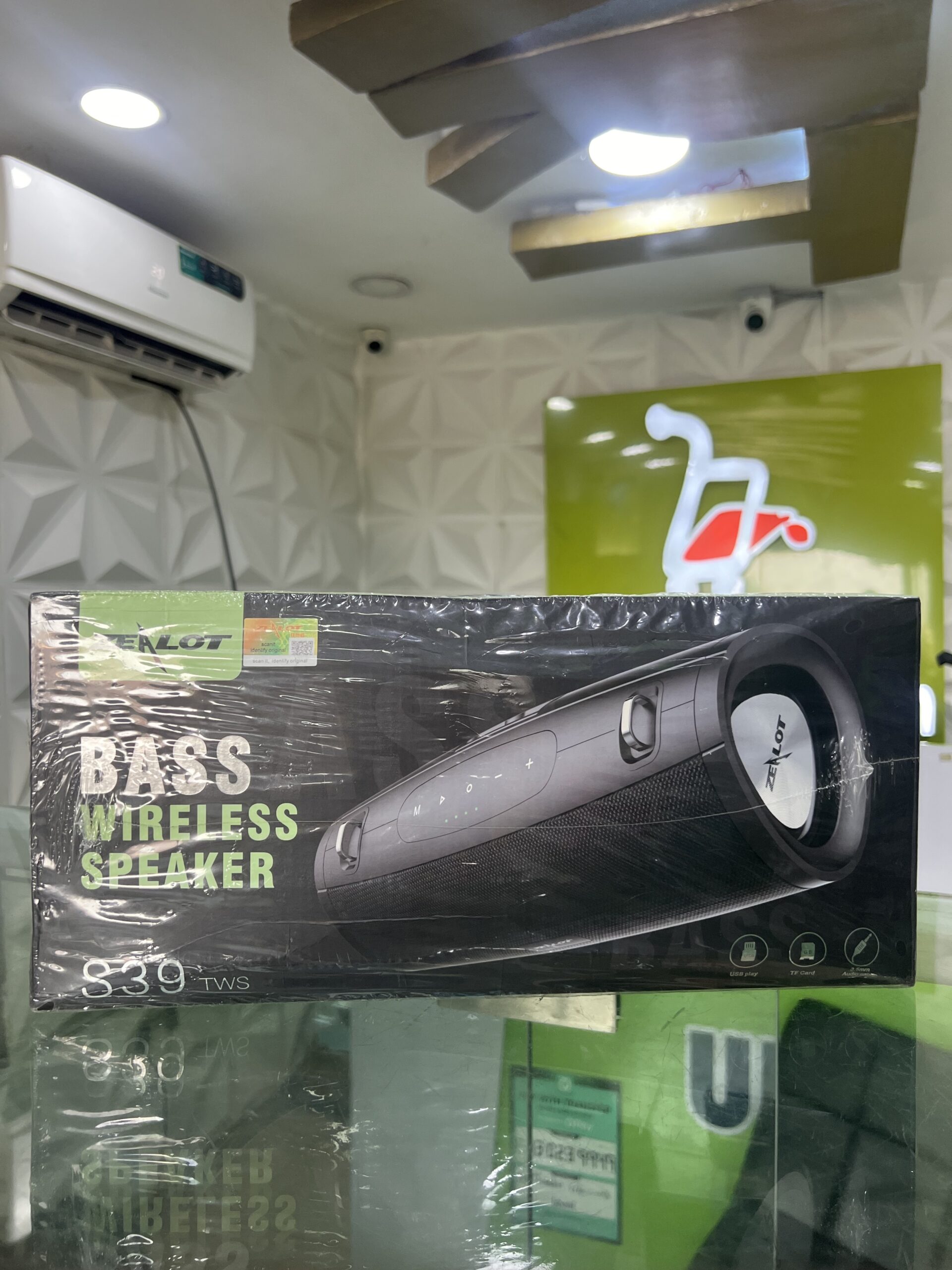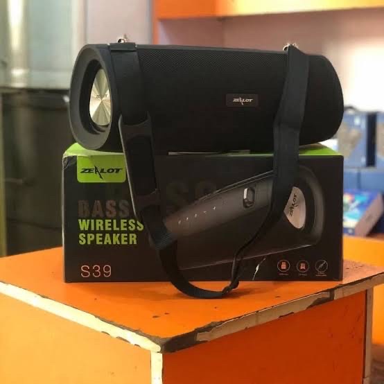 THE SPEAKER S39: is a compact, portable Bluetooth speaker known for its rugged build and long-lasting battery, making it suitable for outdoor use. It delivers clear sound with decent bass for its size and often includes features like a built-in flashlight, power bank capability, and multiple connectivity options.