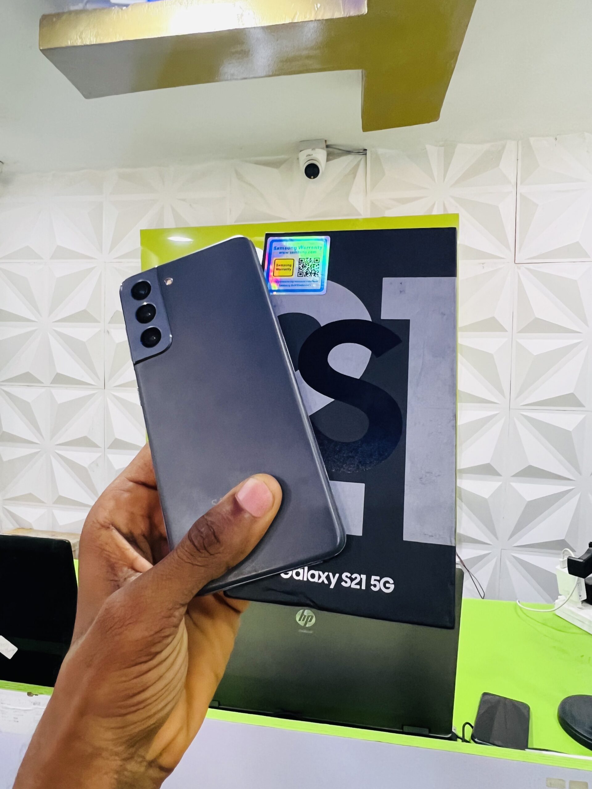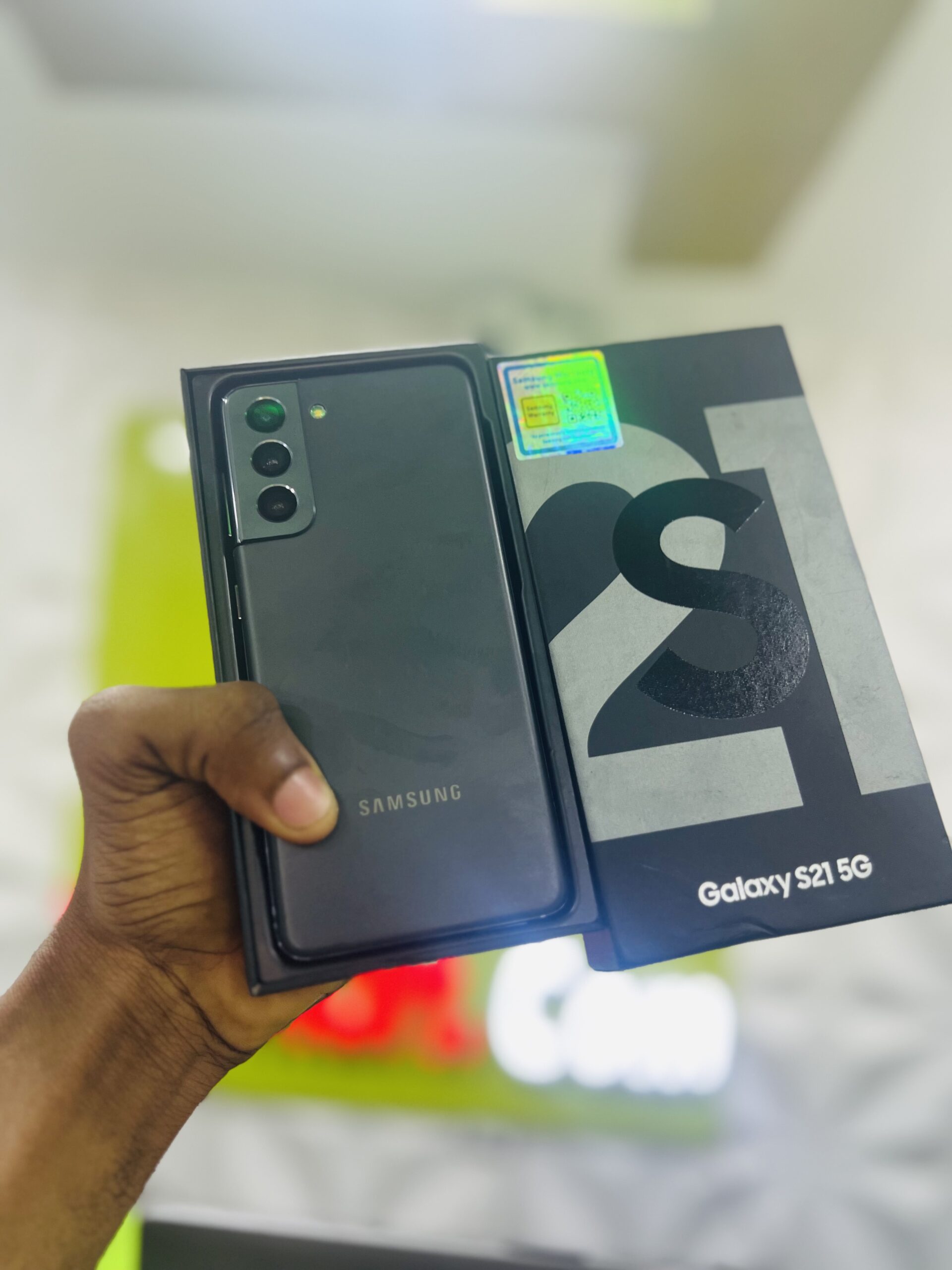 THE SAMSUNG GALAXY S21 :is a sleek flagship smartphone with a 6.2-inch Dynamic AMOLED 2X display offering vibrant colors and a smooth 120Hz refresh rate. It’s powered by a fast processor, features a versatile triple-camera system for high-quality photos and videos, and supports 5G connectivity for quick internet speeds.