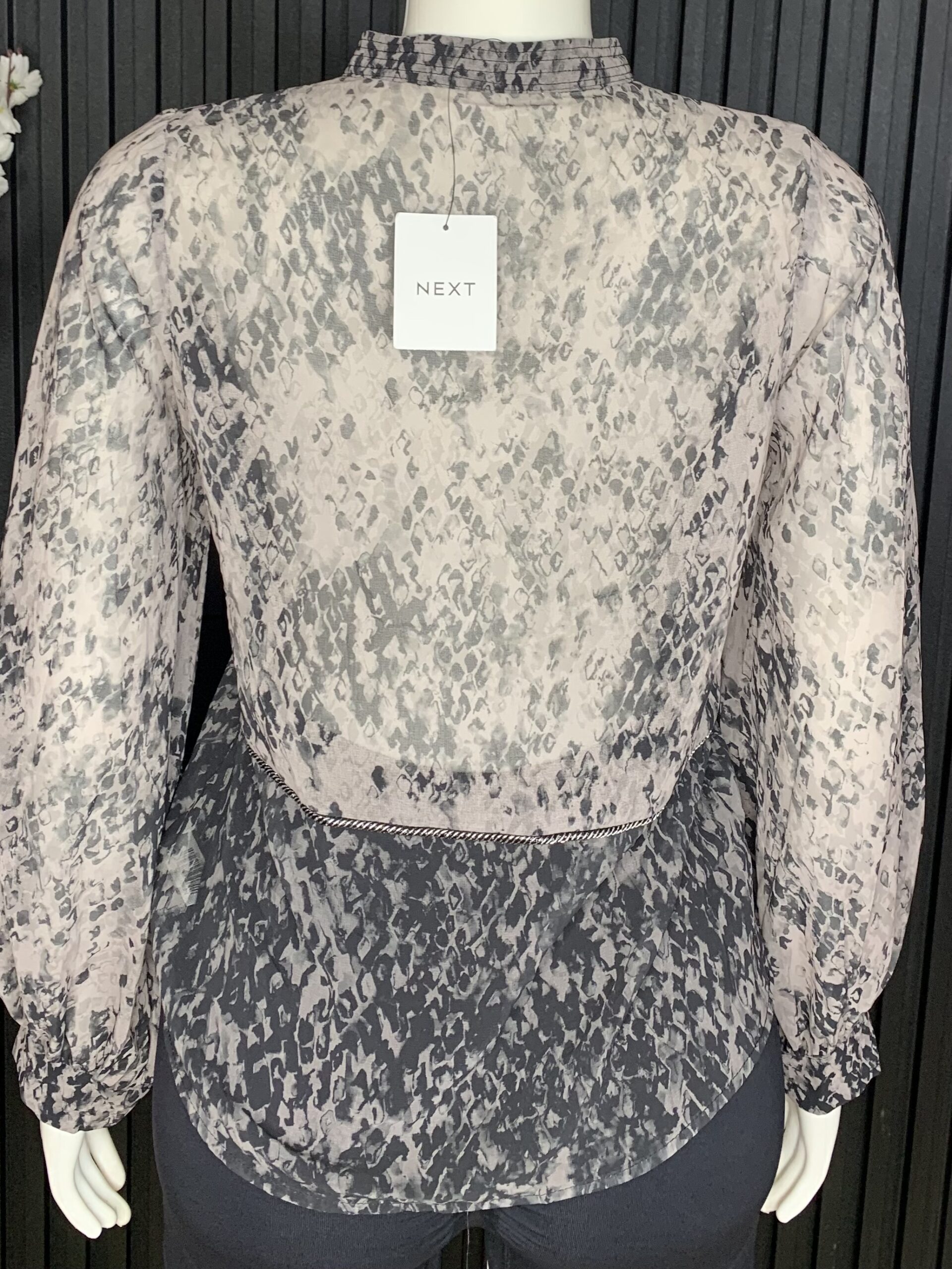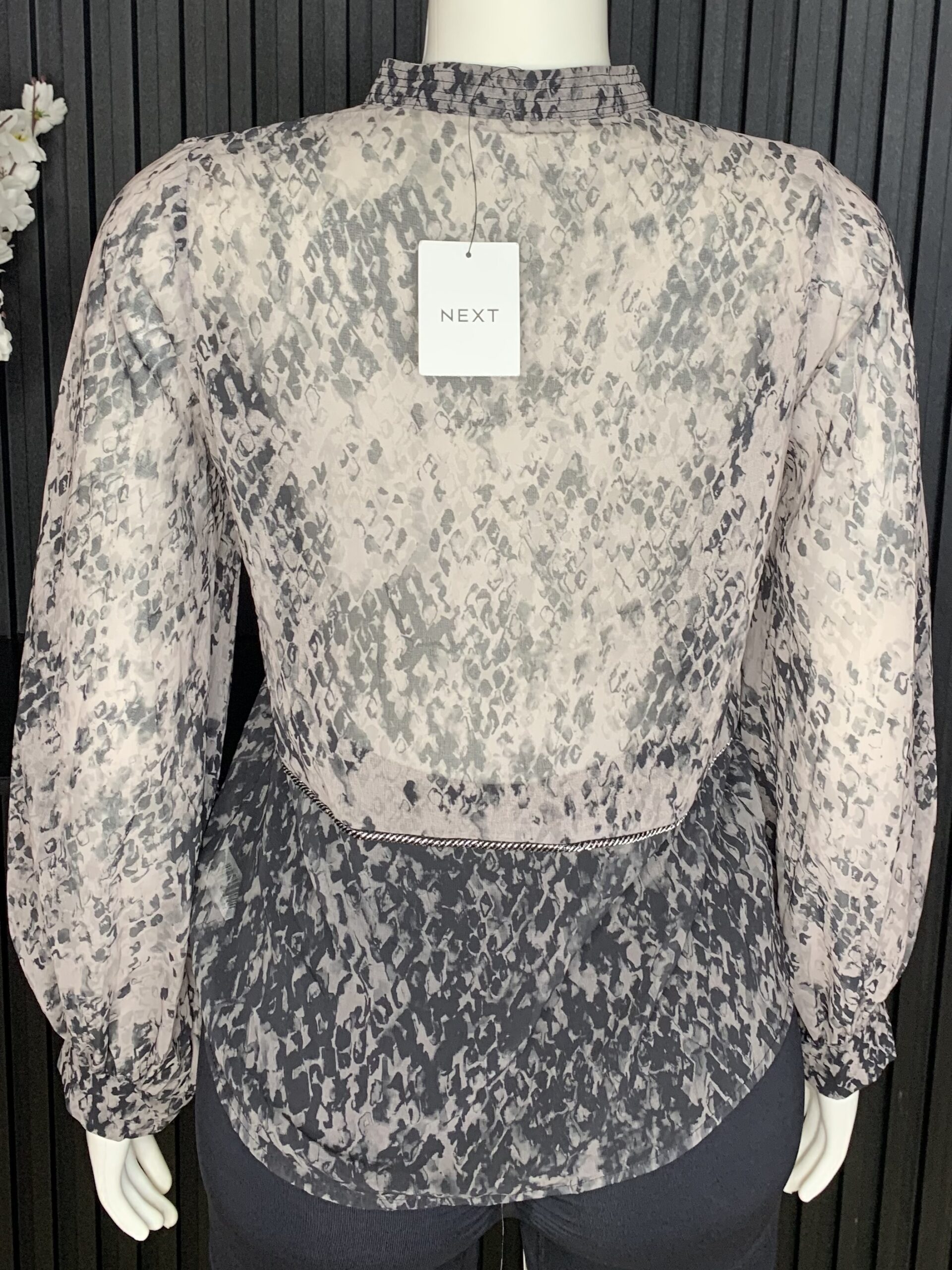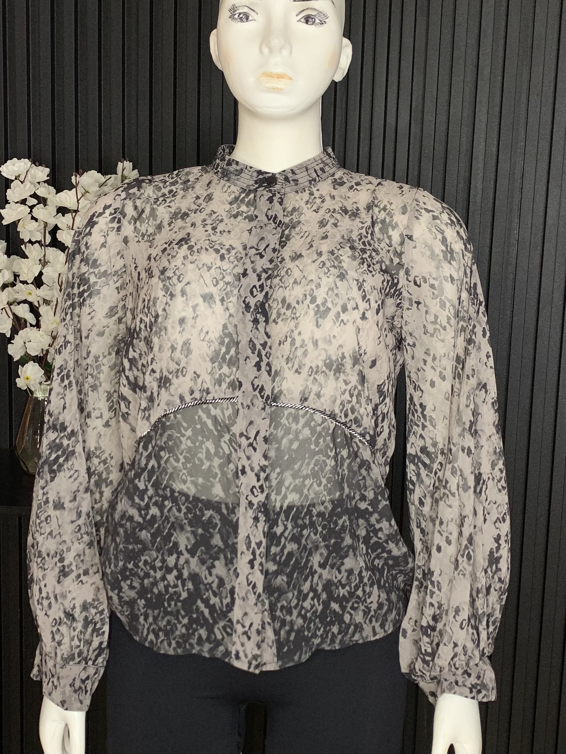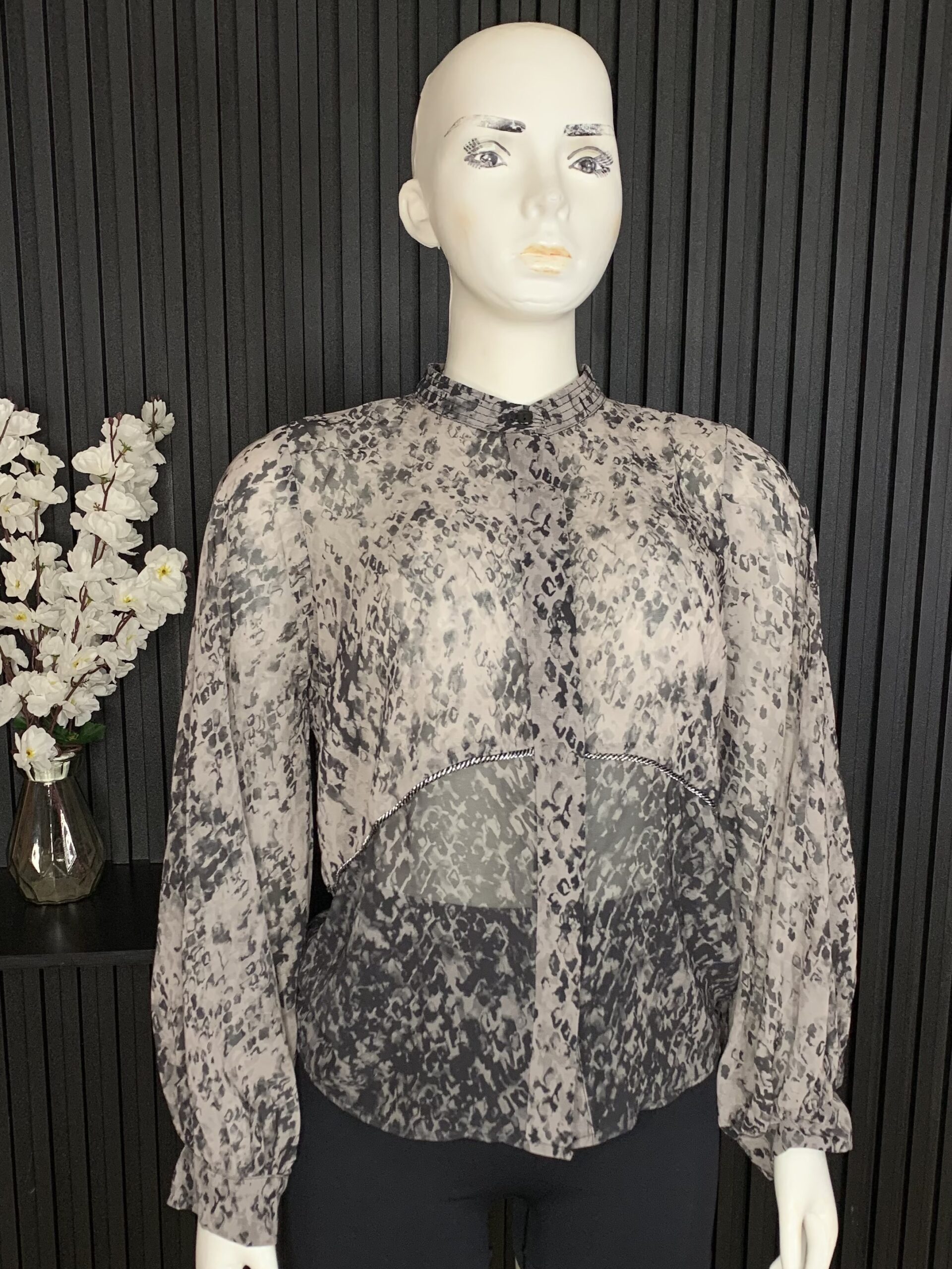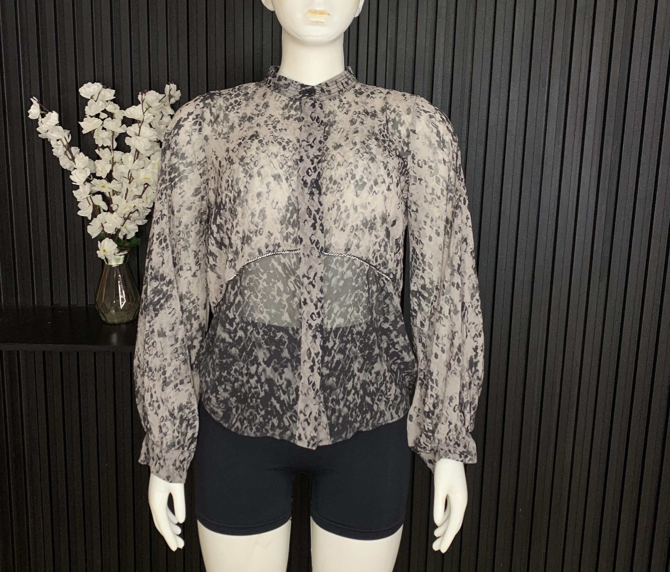 Elegant Sheer Printed Blouse Featuring A Soft Animal Inspired Pattern. Designed With A High Neck And Front Button Detail For A Sophisticated Finish. Lightweight And Breathable With A Flowy Silhouette That Offers Comfort And Style.