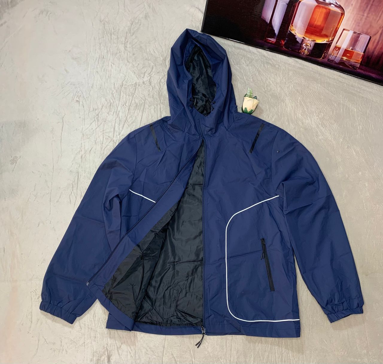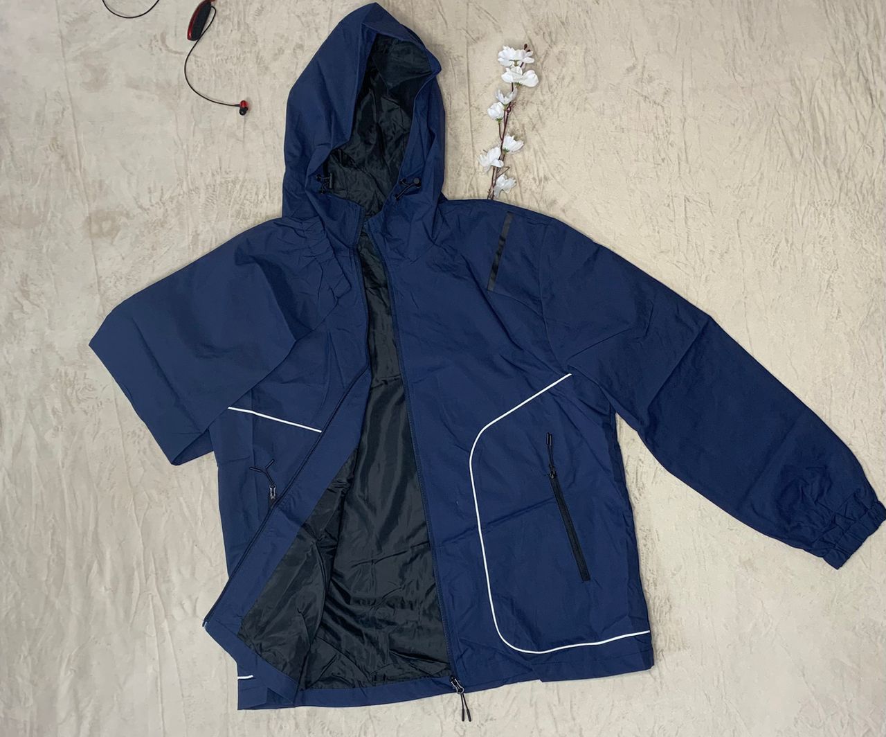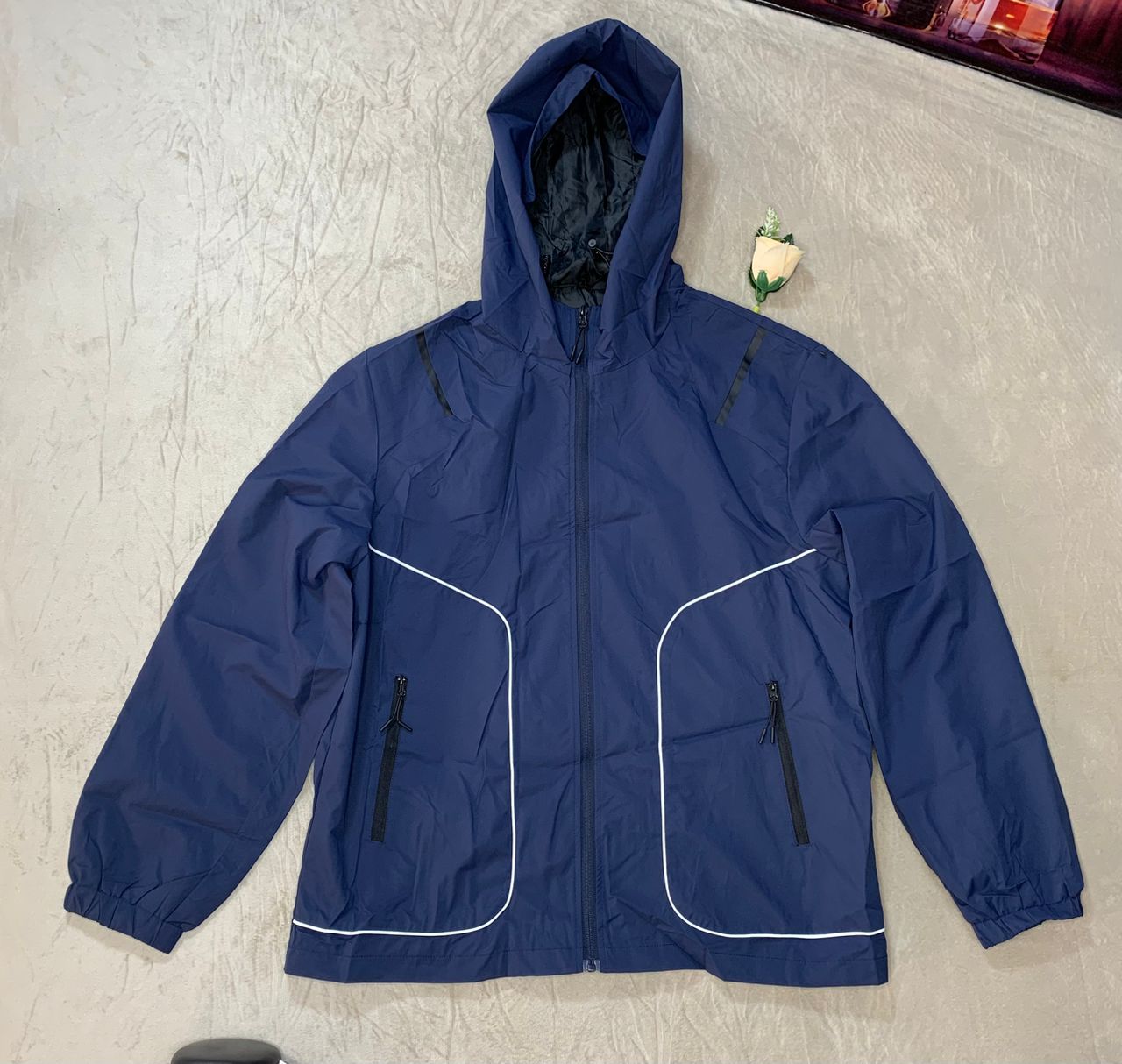 Stay Protected And Stylish With This Premium Unisex Navy Blue Hooded Windbreaker Jacket, Designed For Everyday Comfort And Outdoor Performance. Made From High Quality Water-Resistant Fabric, This Jacket Shields You From Wind And Light Rain While Maintaining A Sleek, Modern Look. Its Lightweight Build Makes It Perfect For Travel, Sports, And Casual Wear.