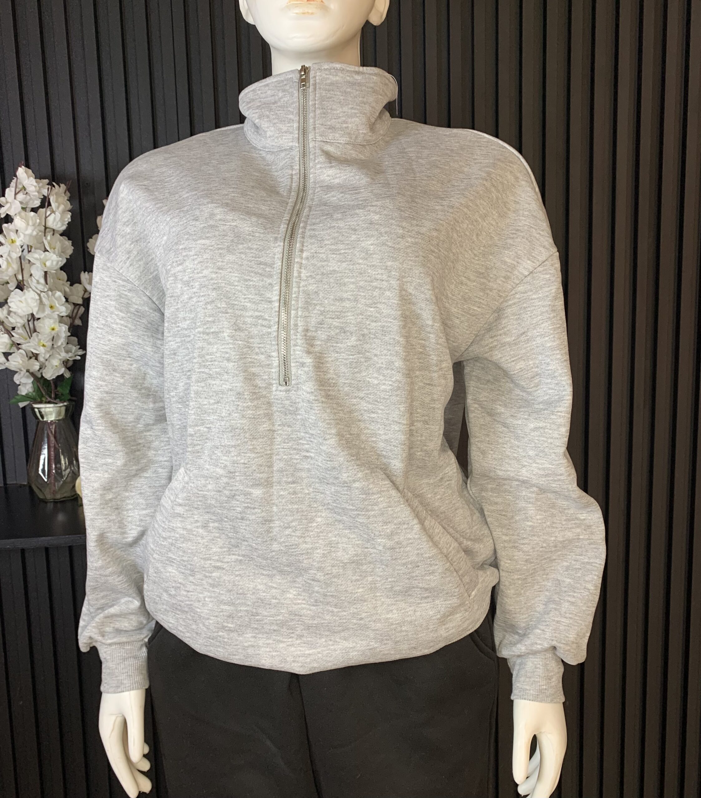 Stay stylish and comfortable with the Chic Grey Half Zip High Neck Sweatshirt, designed for a modern casual look with a perfect blend of warmth and fashion. Ideal for everyday wear, this sweatshirt delivers both comfort and effortless street style.