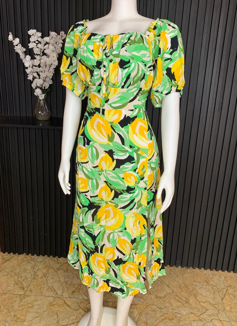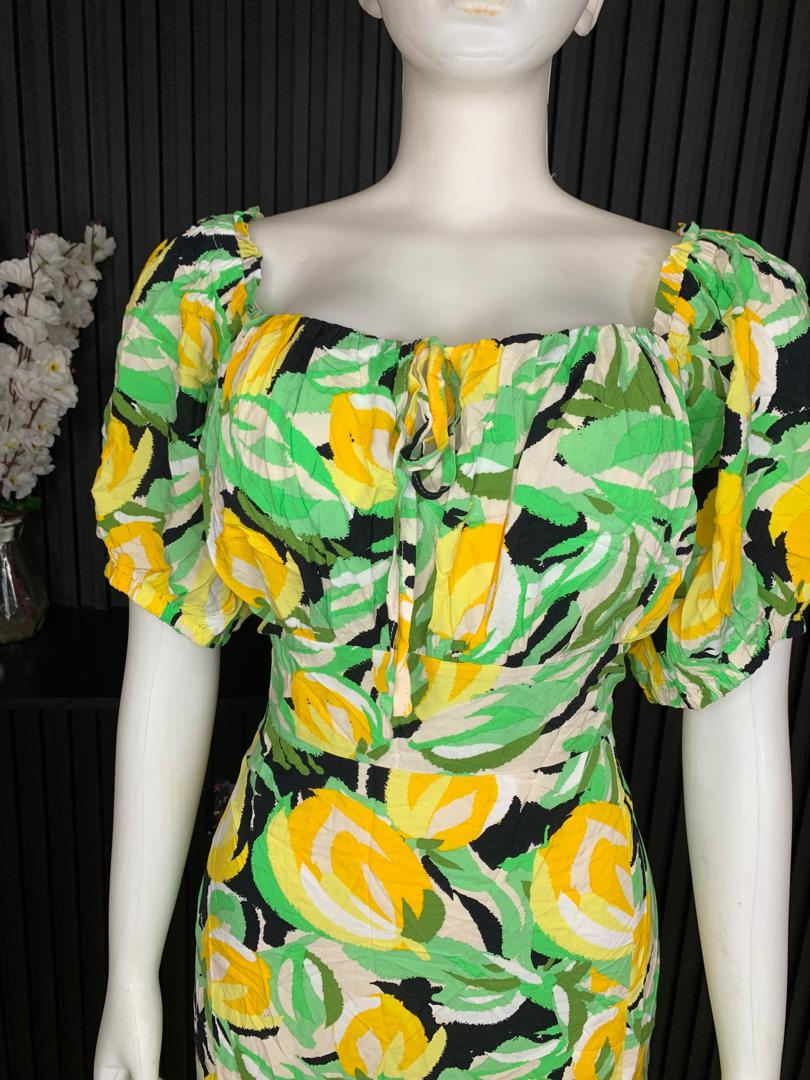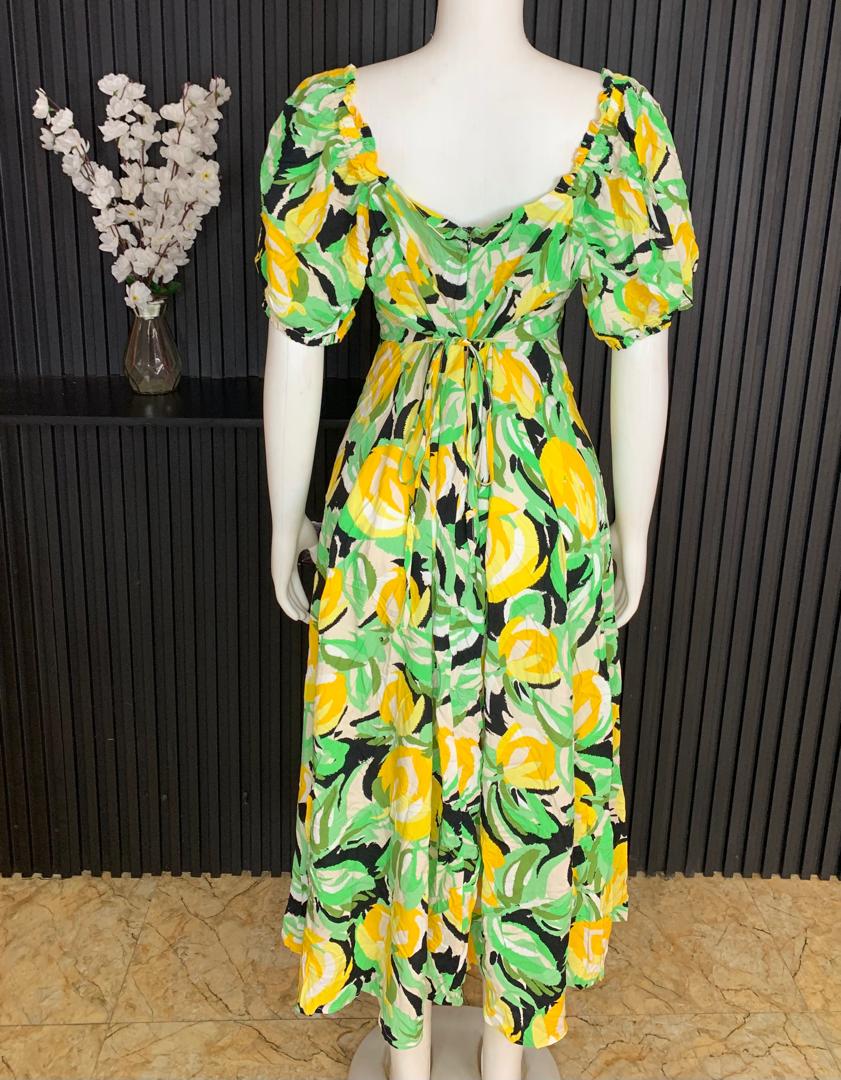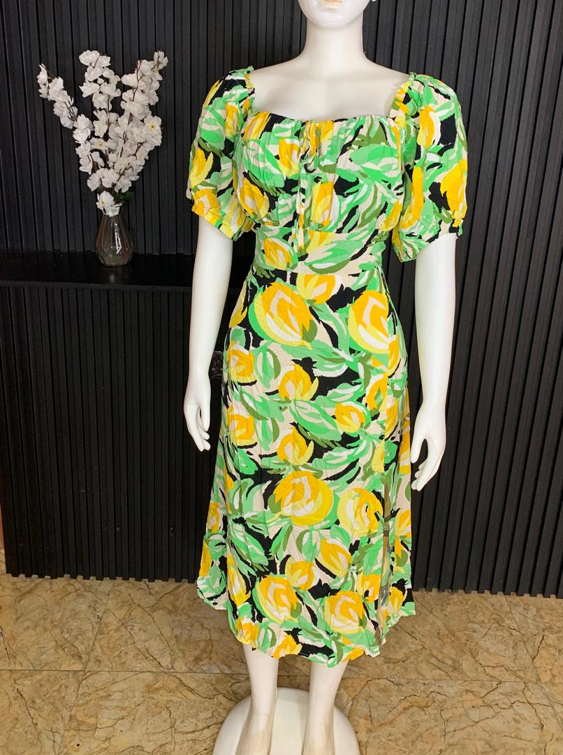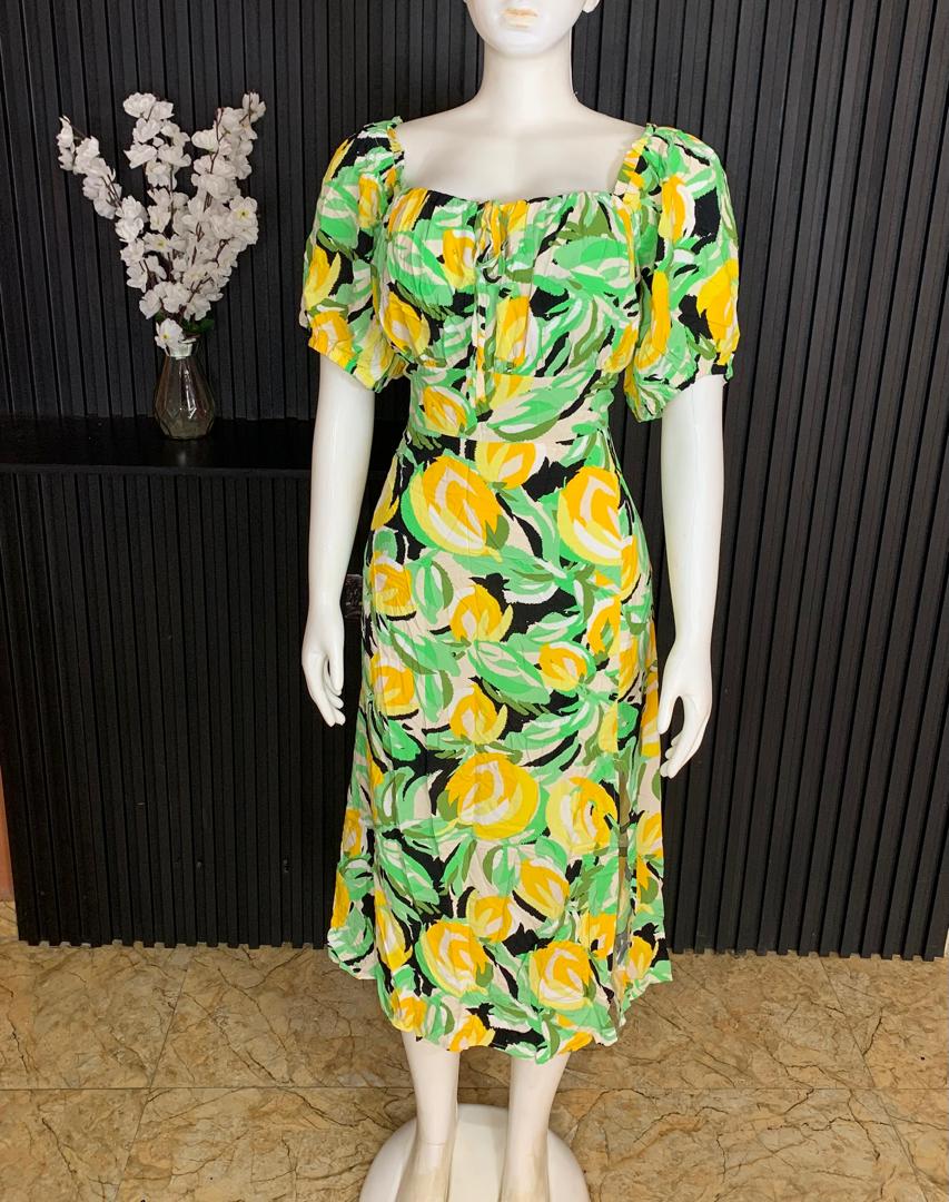 | Product Name | Floral Tropical Puff Sleeve Midi Dress |