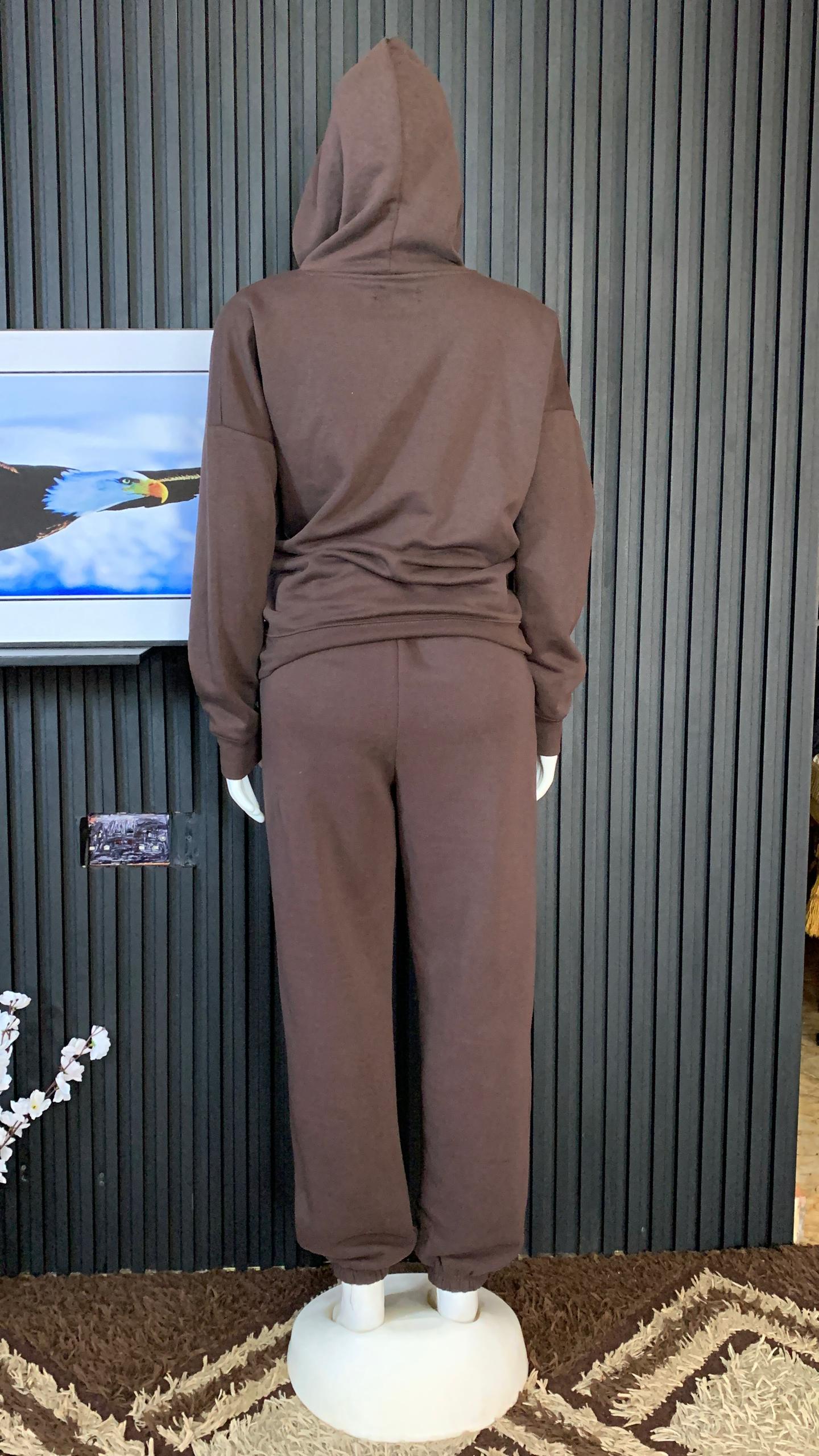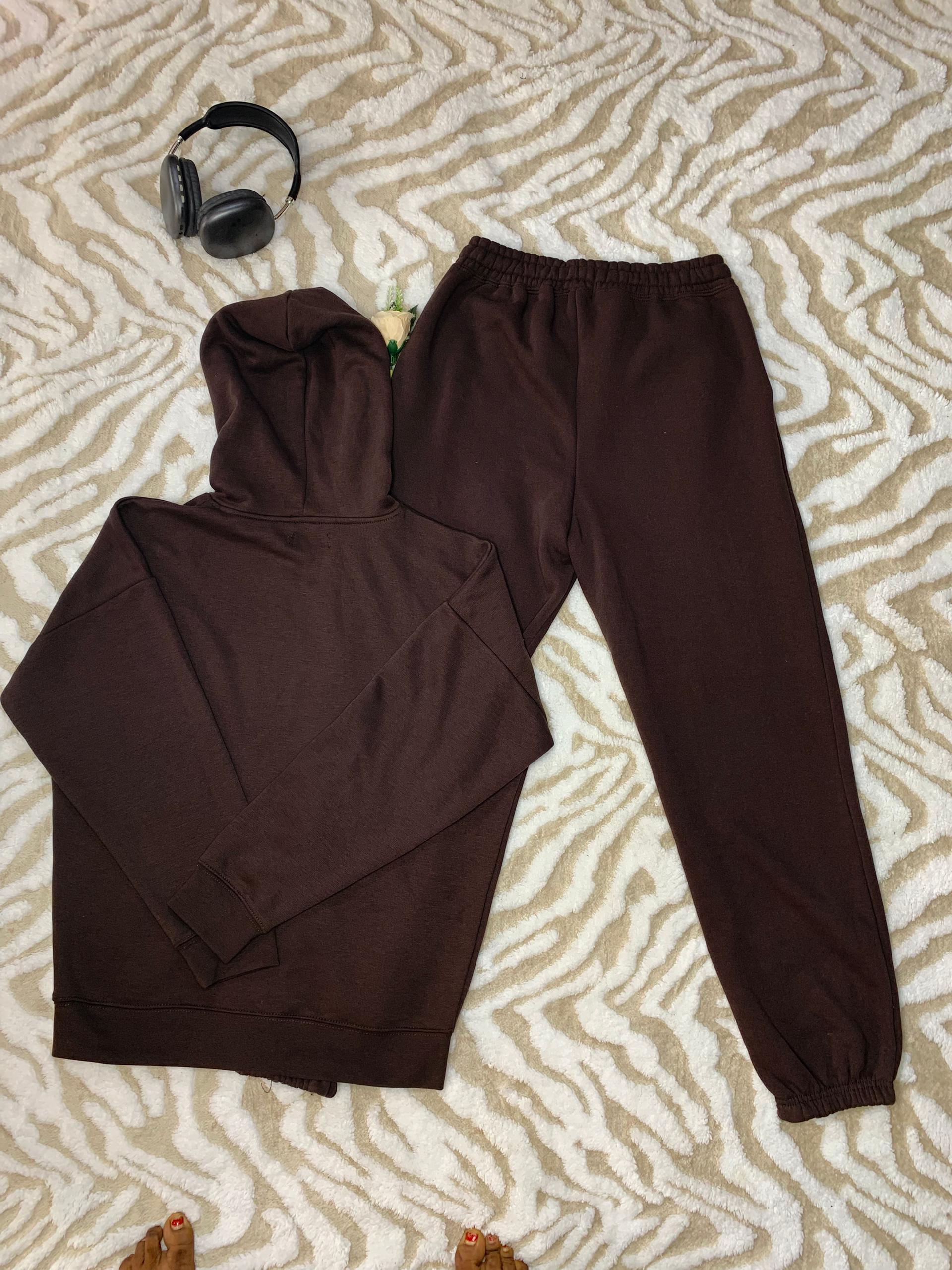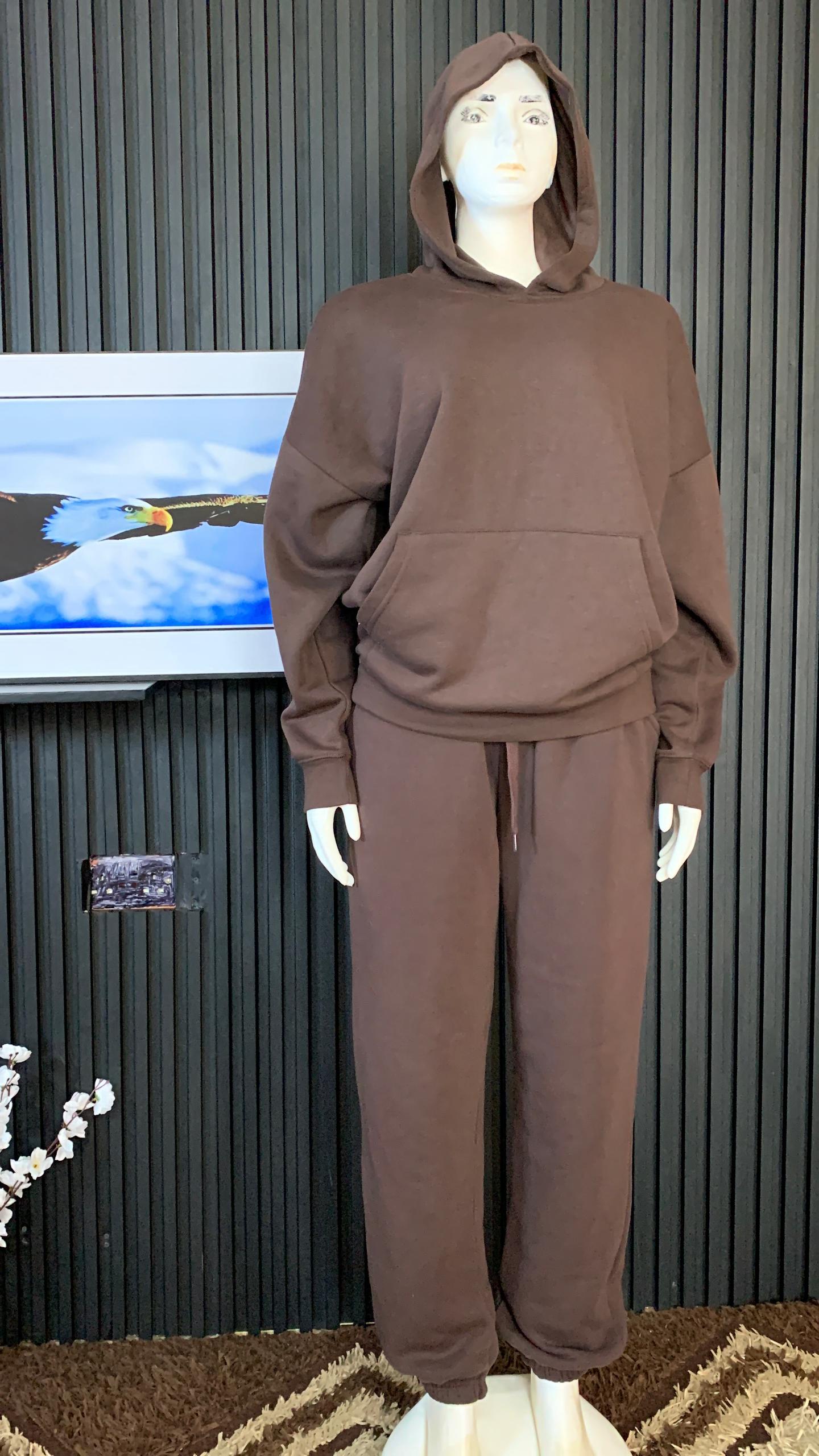 Elevate Your Casual Wardrobe With This Ultra Comfortable Two Piece Loungewear Set. Crafted From High-Quality, Breathable Fleece Fabric, This Set Features A Relaxed Fit Hoodie With A Spacious Hood And Matching High-Waisted Joggers. The Rich Chocolate Brown Hue Offers A Sophisticated Minimalist Aesthetic Perfect For Running Errands, Gym Warm-Ups, Or Relaxing At Home. Designed For Maximum Durability And A Soft Hand-Feel, This Versatile Tracksuit Provides Both Style And Warmth For Year-Round Wear.
