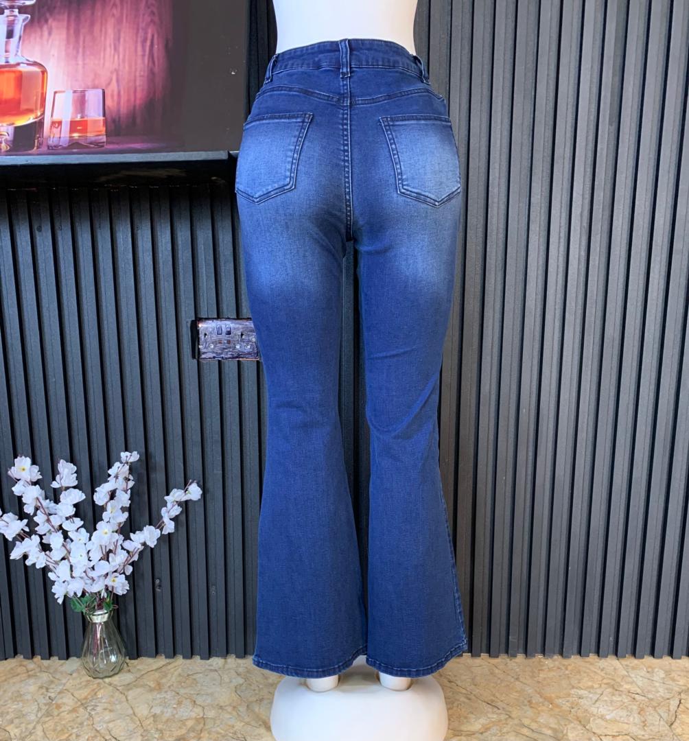 Experience A Classic Retro Silhouette With These High Waisted Blue Bell Bottom Flare Denim Jeans. These Trendy Trousers Feature A Flattering High-Rise Waistband Designed To Cinch Your Waist And Elongate Your Legs. The Body-Hugging Denim Transitions Into A Dramatic Flare At The Ankle, Providing A Timeless Vintage Aesthetic. Perfect For Both Casual And Dressy Occasions, These Jeans Offer A Versatile And Stylish Addition To Any Modern Wardrobe